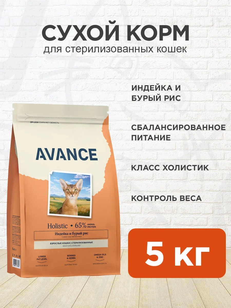 Avance Корм для кошек сухой для стерилизованных индейка рис 5 кг