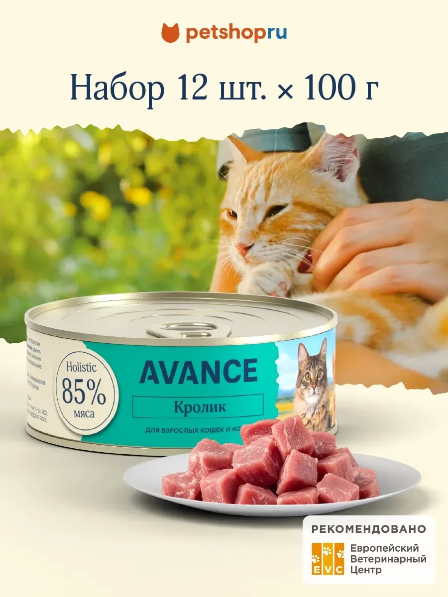 AVANCE holistic Консервы для кошек и котят с кроликом, Rabbit, 12 х 100 г