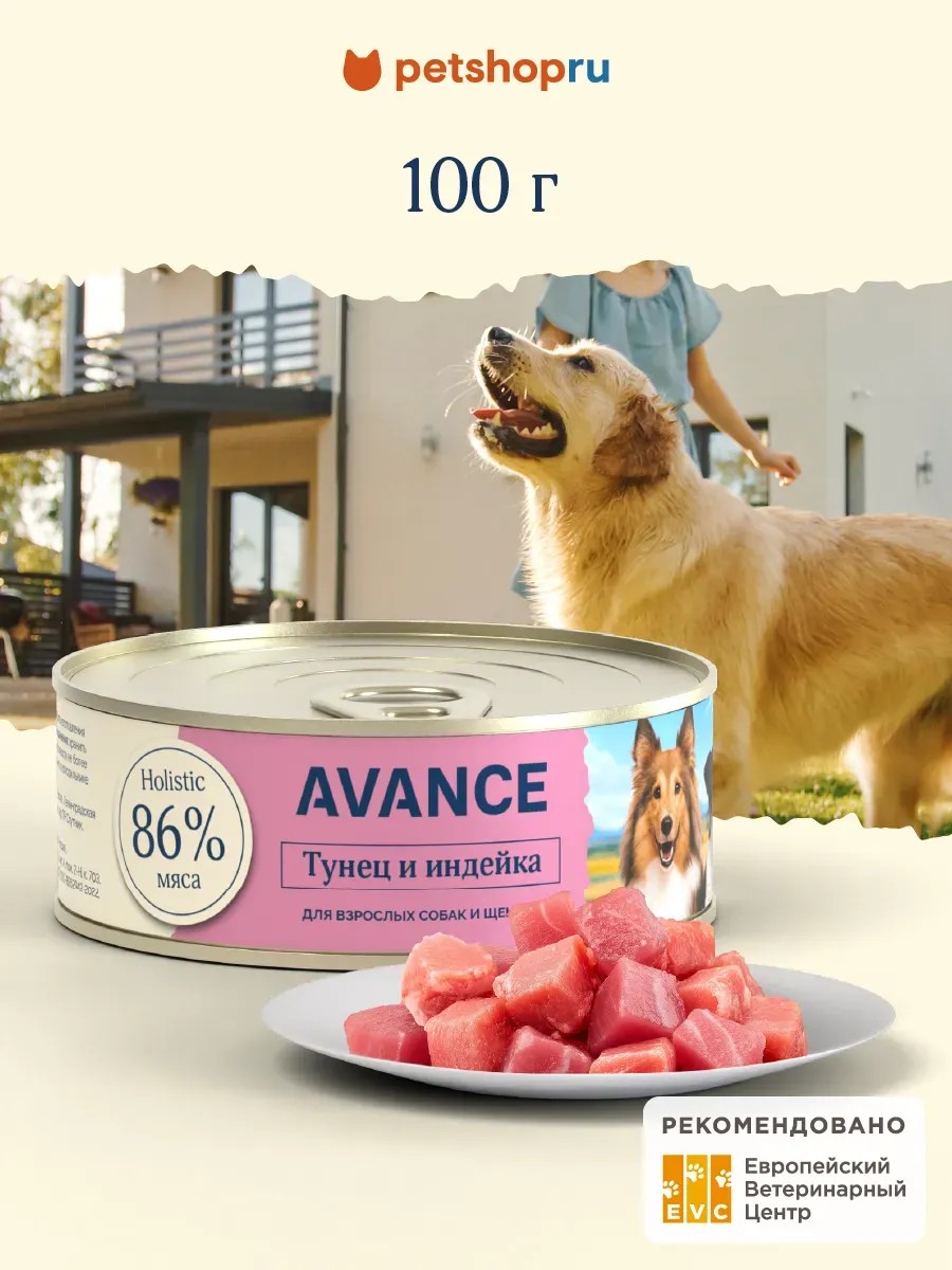 AVANCE holistic Консервы для собак и щенков с тунцом и индейкой, 100 г
