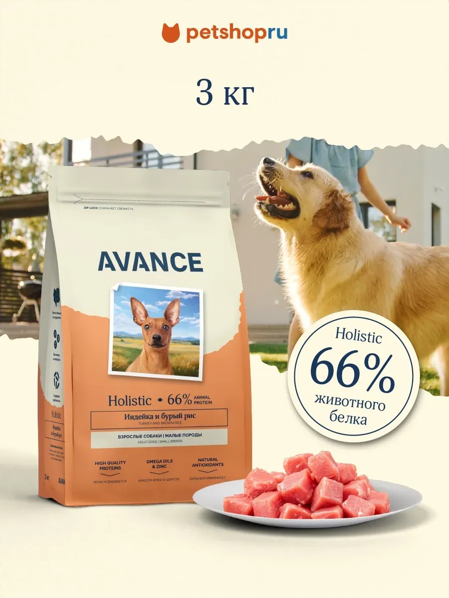 AVANCE holistic корм для собак малых пород с индейкой и бурым рисом,3кг