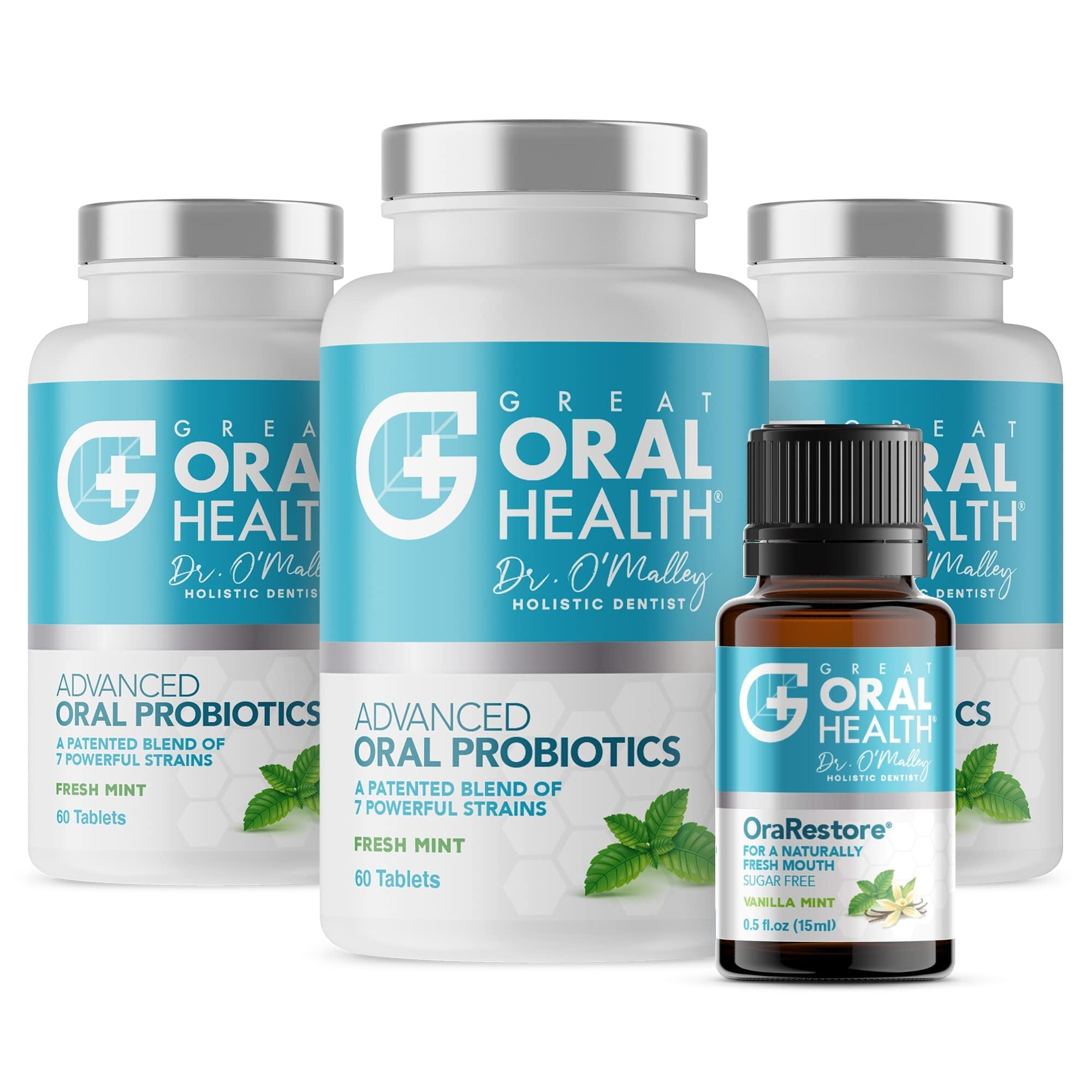 Advanced Bad Breath Treatment Set The Oral Probiotics Tablet & OraRestore Natural Mouth & Tooth Concentrated Oil Dentist Formulated Mint Flavor