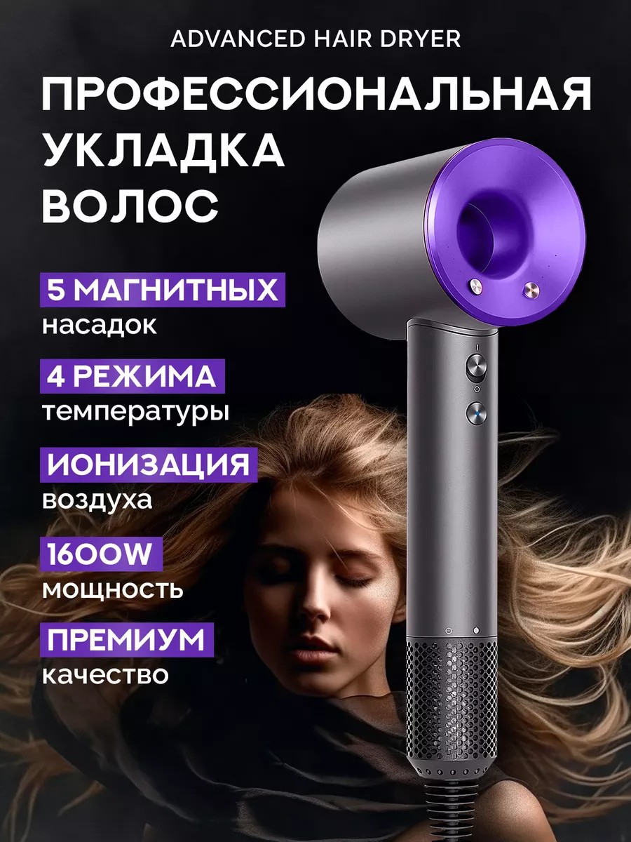Advanced hair dryer – фен копия Дайсон, не уступающий аналогу по функциональности и удобству использования, с насадками для сушки и укладки, отличный выбор для тех, кто хочет выглядеть стильно и ухоженно каждый день. Закажите фен для волос с ионизацией и откройте для себя мир безупречной укладки! Это отличный подарок на день рождения, подарок на 8 марта, 14 февраля, Новый год.