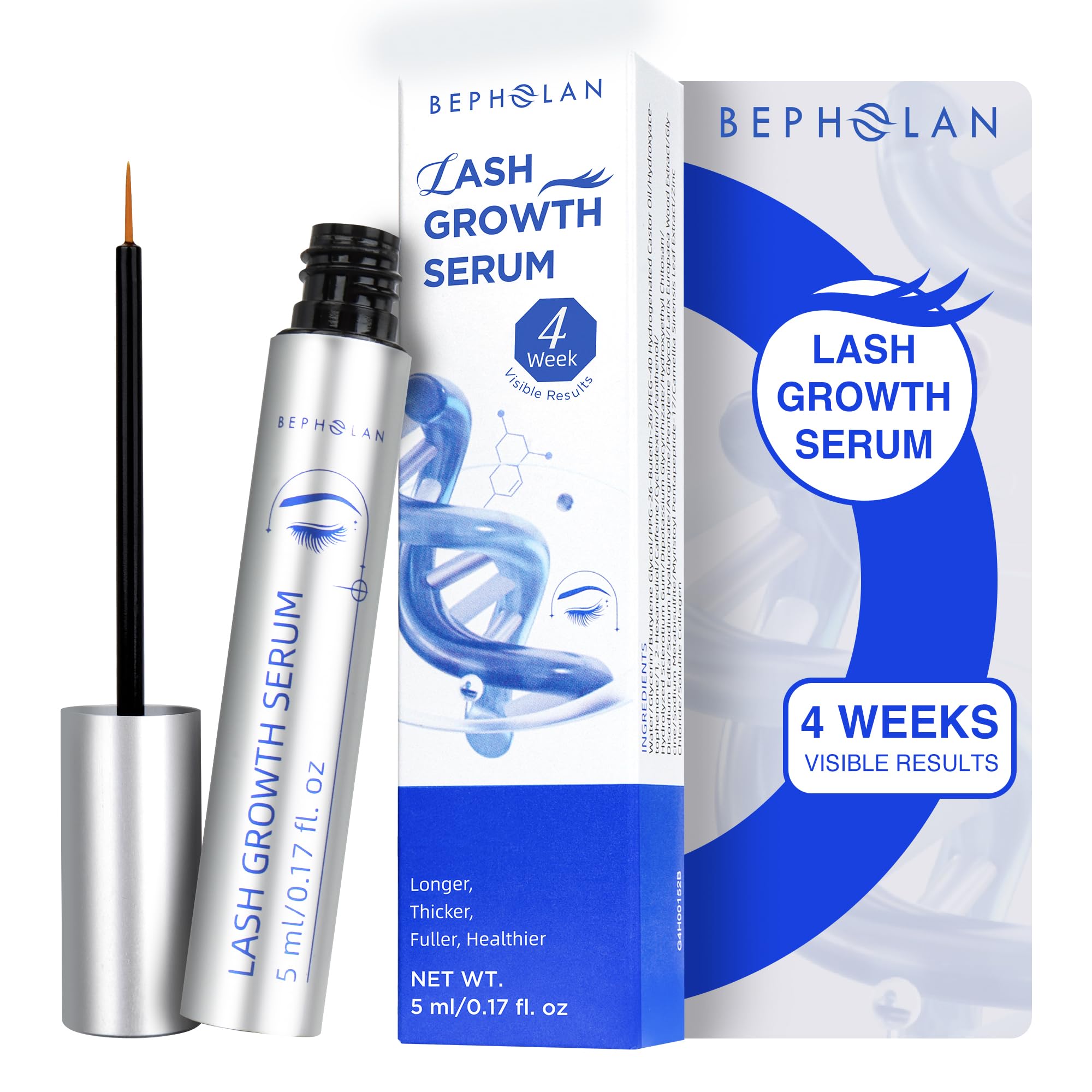 [Fast Absorption, Easy Routine] BEPHOLAN rapid lash eyelash growth serum absorbs in 30 minutes and penetrates skin in 4 hours. Lightweight texture, ideal for morning and evening use. [6-Month Supply, Multi-Area Use] BEPHOLAN 5ml lash growth serum supports daily use on lashes, brows, or sideburns. A single bottle covers multiple eyelash growth cycles with consistent application. [Clean Ingredients, No Pigment Staining] Infused with castor oil, BEPHOLAN eyelash enhancing serum strengthens without irritation. Safe for sensitive eyes and long-term use. [Powerful Formula Backed by Science] Unlike other lash serums, BEPHOLAN combines castor oil with advanced plant-based ingredients to deeply nourish and renew — a next-gen eyelash growth solution for real, visible results. [Visible Results, Real Lash Growth] BEPHOLAN lash serum for eyelash growth helps activate hair follicles and visibly enhance eyelash growth in 4 weeks.