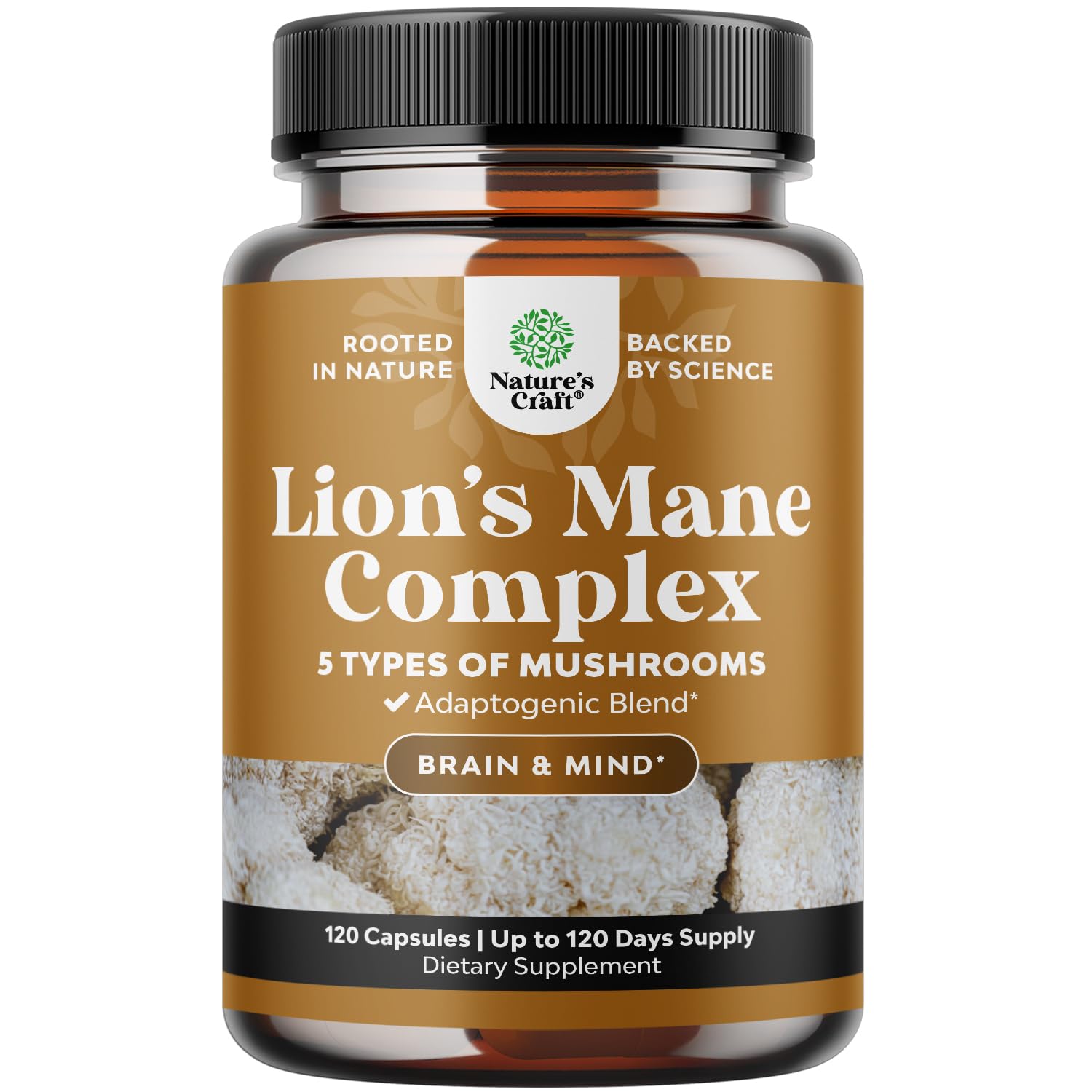 Natures Craft Quality - We are proud to be a leading name in a variety of brain health supplements for adults because we believe in living up to your true potential with the help of Mother Nature. Immune Support - Lion's mane extract is a powerful adaptogen that also offers year round immunity support to help you feel your best especially when combined with antioxidant rich shiitake and chaga. Best of the Best - Our lion's mushroom capsules contain highly concentrated extracts of some of the most beneficial varieties including Maitake and Reishi the king and queen of the mushroom kingdom. Focus and Memory Pills for Brain Health - Try our 5 in 1 extra strength functional mushroom pills and see why these superfoods are included in so many brain supplements for memory and focus support. Nootropics Brain Support Supplement - Lion's mane capsules are commonly used to improve cognitive performance but our Mushroom Complex Capsules also feature Chaga and Reishi for synergistic benefits.