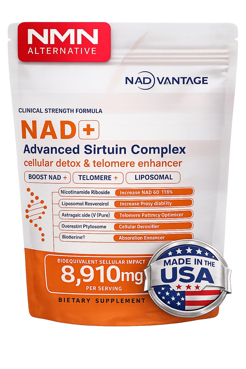 NADvantage - Quality You Can Trust - Non-GMO, vegan-friendly, gluten-free manufactured in the USA in a cGMP-certified, FDA-registered facility and third-party tested for purity and potency. Enhanced Absorption System - Quercetin Phytosome and BioPerine work synergistically to improve uptake of key compounds for maximum effectiveness. Liposomal Resveratrol Astragaloside IV - 160 mg liposomal resveratrol and 100 mg Astragaloside IV for telomere integrity, sirtuin activation, and antioxidant support. 1,000mg Nicotinamide Riboside NADvantage - Doubles NAD? levels in as little as 2 weeks to help fuel cellular energy, repair, and healthy gene expression. 25× More Bioavailable Than Direct NAD - NR is a clinically studied NAD? precursor that the body efficiently converts into NAD?, bypassing absorption limits of direct NAD? supplements.