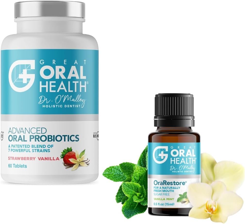 Holistic dentist formulated: This natural mouthwash concentrate is a complete solution to help restore your gums mouth to a healthier state. Use it in place of or with your favorite toothpaste, dilute as an oral rinse, or apply directly to teeth gums. Superior gum health cavity prevention: Soothe, irritated, receding gums with our powerful blend of essential oils. OraRestore targets bad cultures on your tongue, teeth gums to effectively combat BAD BREATH and plaque build-up at its source. Advanced Oral Health Protection: Dr. Paul O'Malley's blend of protective oral probiotics is a powerful defense against "bad" cultures to help you maintain a healthy mouth. Restoring a healthy mouth is not an overnight process! Poor oral health takes years to develop, so it can take weeks or months to turn around. Clinically Researched Strains: A powerful blend of dental probiotics packed with 7 potent strains of probiotics: the patented BLIS K12 and BLIS M18, Lactobacillus Acidophilus, Lactobacillus Reuteri, Lactobacillus Salivarius, Lactobacillus Paracasei, Lactobacillus Thermophilus, and Streptococcus Salivarius. Fights Bad Breath Supports Immunity: Our oral probiotic works nonstop to attack bad breath at its source and restore healthy gums and teeth. By naturally controlling "bad" cultures, it restores a healthy, non-acidic pH to your mouth. It also works to support and strengthen your immune system. Contact us for your 83 page Oral Health eBook!.