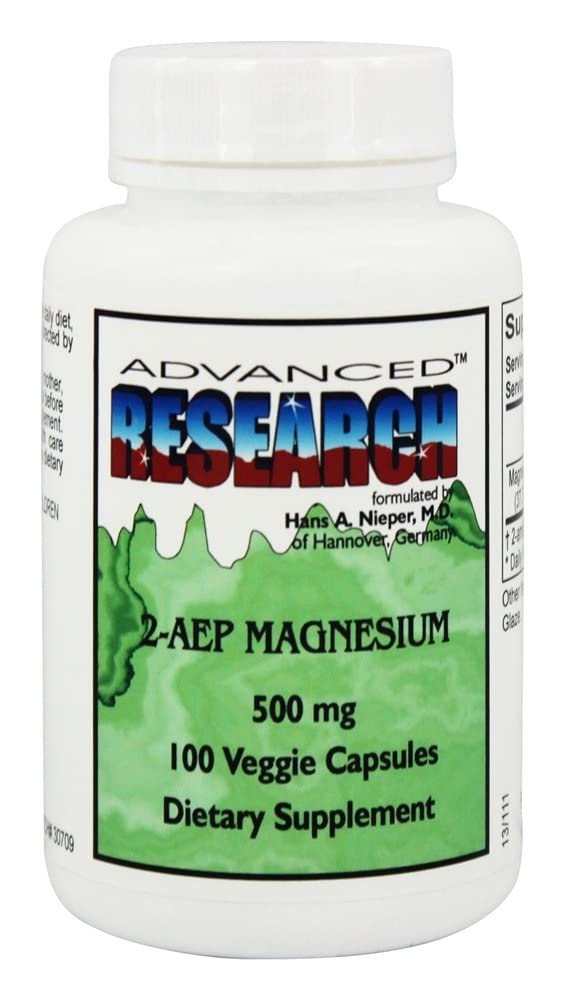 Advanced Research 2-AEP Magnesium 500 mg. - 100 Vegetarian Capsules Advanced Research 2-AEP Magnesium 500 mg. is a quality health care supplement product formulated by Hans A. Nieper, M.D. Magnesium is an essential mineral for calcium and potassium assimilation. Magnesium contributes to the proper nerve muscle impulses, enzyme reactions, formation of bone and carbohydrate