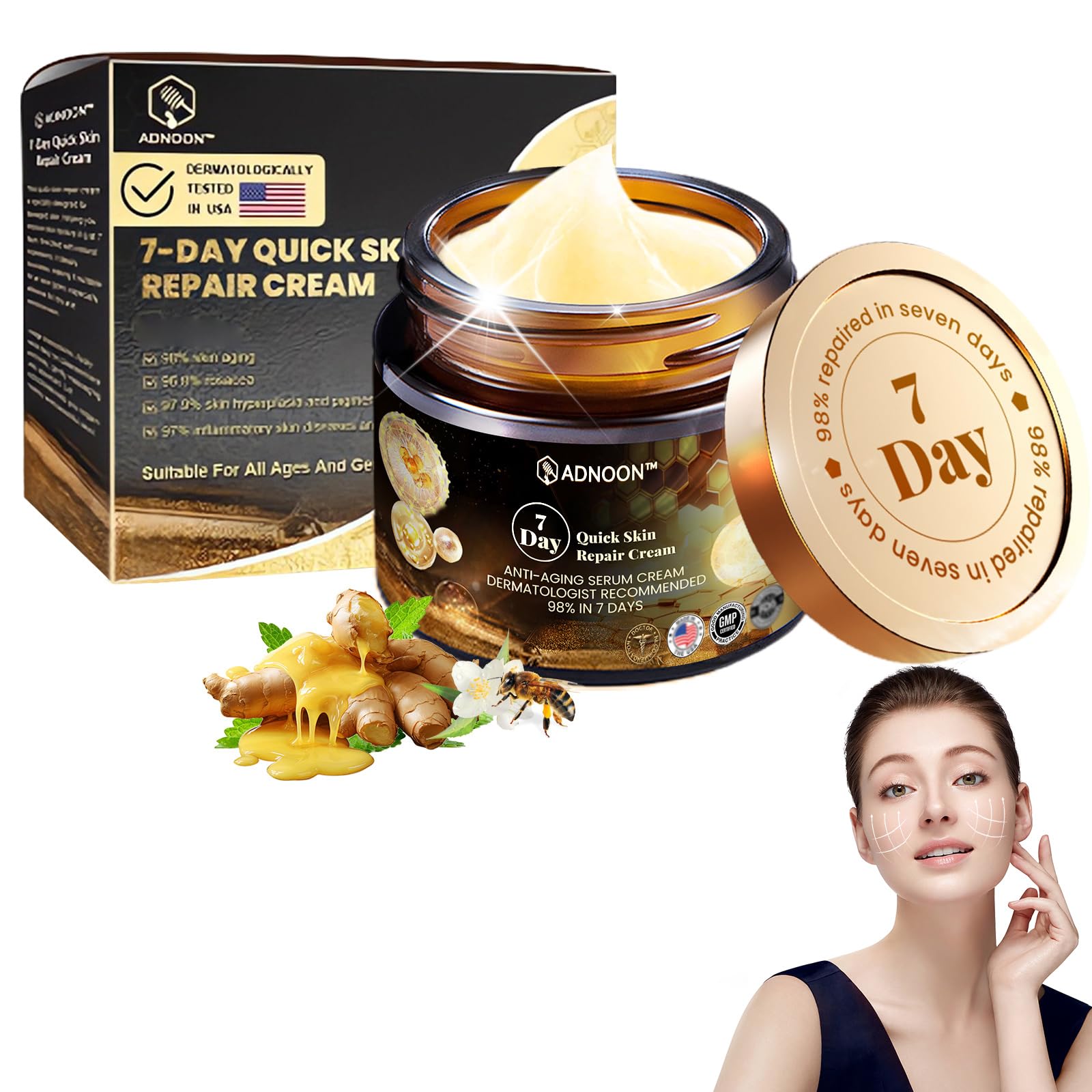 AEEHFENG ADNOON 7-Day Multi-Effect All-in-One Skincare Cream ADNOON Skin Care Cream Professional Bee Venom Cream Fine Line Skin Care Cream for All Skin Types (1 Bottle)