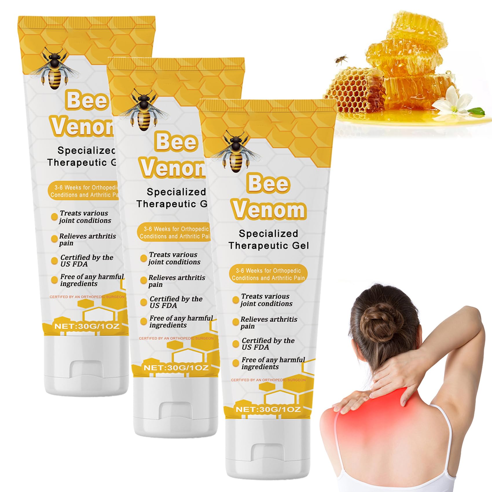 Aeehfeng Bienengift Gemsten therapy pain relief gel, Aeehfeng Bienengift yellow, aeehfeng Bienengift Creme, Aeehfeng Bienengiftsalbe, Aeehfeng Bienengiftgel SPECIFICATION: Net weight : 30 Shelf life: 3 years Package includes: 2 3 5 8 pieces aeehfeng beeergift :) If you are not satisfied with the goods obtained or the goods received is damaged, please contact us in good time before you apply for a return.We will answer your questions within 24 hours. Wr much wish you shopping :)suitable for all lifestyles ----------, Students, athletes or pensioners are, our Aeehfeng Bee Venom Joint Therapy Pain Relief Gel can help you get healthy joints.Versatile --------------------------------feng bee venom joint therapy pain relief gel.Apply on the neck, shoulders, knees, hands, feet, ankles and different parts of the body.Easy application ---------------- you first dry the area you want to apply, apply a generous amount of cream if necessary and let the cream stay on the skin for at least 15 minutes.Aeehfeng bee venom joint therapy pain relief gel.Promote the blood circulation ----------------------------------------------------------- aeehfeng bee venom joint therapy pain relief gel increase the nutrient supply of the joint tissue and thus promote the repair of the joints.Natural ingredients ---------- our Aeehfeng Bee Venom Joint Therapy Pain Relief GEL is enriched with natural herbal extracts that work together to support the health and comfort of the joints.WILLKOMMEN IN MEINEM SHOP :) Aeehfeng Bienengift Gelenktherapie Schmerzlinderungsgel, Aeehfeng Bienengift Gelb, Aeehfeng Bienengift Creme, Aeehfeng Bienengiftsalbe, Aeehfeng Bienengiftgel SPEZIFIKATION: Nettogewicht:30 Haltbarkeit: 3 Jahre PAKET BEINHALTET: 2 3 5 8 Stück Aeehfeng Bienengift Gelenktherapie Schmerzlinderungsgel :) Wenn Sie mit der erhaltenen Ware nicht zufrieden sind oder die erhaltene Ware beschädigt ist, kontaktieren Sie uns bitte rechtzeitig, bevor Sie eine Rücksendung beantragen. Wir werden Ihre Fragen innerhalb von 24 Stunden beantworten. WÜNSCHE IHNEN EIN GLÜCKLICHES EINKAUFEN :)Geeignet für alle Lebensstile ---------- Egal, ob Sie Büroangestellter, Student, Sportler oder Rentner sind, unser Aeehfeng Bee Venom Joint Therapy Pain Relief Gel kann Ihnen dabei helfen, gesunde Gelenke zu erhalten. Vielseitig einsetzbar ---------- Aeehfeng Bee Venom Joint Therapy Schmerzlinderungsgel. Auf Nacken, Schultern, Knie, Hände, Füße, Knöchel und verschiedene Körperteile auftragen. Einfache Anwendung ---------- Waschen und trocknen Sie zuerst den Bereich, den Sie auftragen möchten, tragen Sie bei Bedarf eine großzügige Menge Creme auf und lassen Sie die Creme mindestens 15 Minuten auf der Haut bleiben. Aeehfeng Bee Venom Joint Therapy Schmerzlinderungsgel. Fördern Sie die Durchblutung ---------- Aeehfeng Bee Venom Joint Therapy Pain Relief Gel Erhöhen Sie die Nährstoffversorgung des Gelenkgewebes und fördern Sie so die Reparatur der Gelenke. Natürliche Inhaltsstoffe ---------- Unser Aeehfeng Bee Venom Joint Therapy Pain Relief Gel ist mit natürlichen Kräuterextrakten angereichert, die zusammenwirken, um die Gesundheit und den Komfort der Gelenke zu unterstützen.Aeehfeng Bienengift Gelenktherapie Schmerzlinderungsgel, Aeehfeng Bienengift Gelb, Aeehfeng Bienengift Creme, Aeehfeng Bienengiftsalbe, Aeehfeng Bienengiftgel (3 stuck)