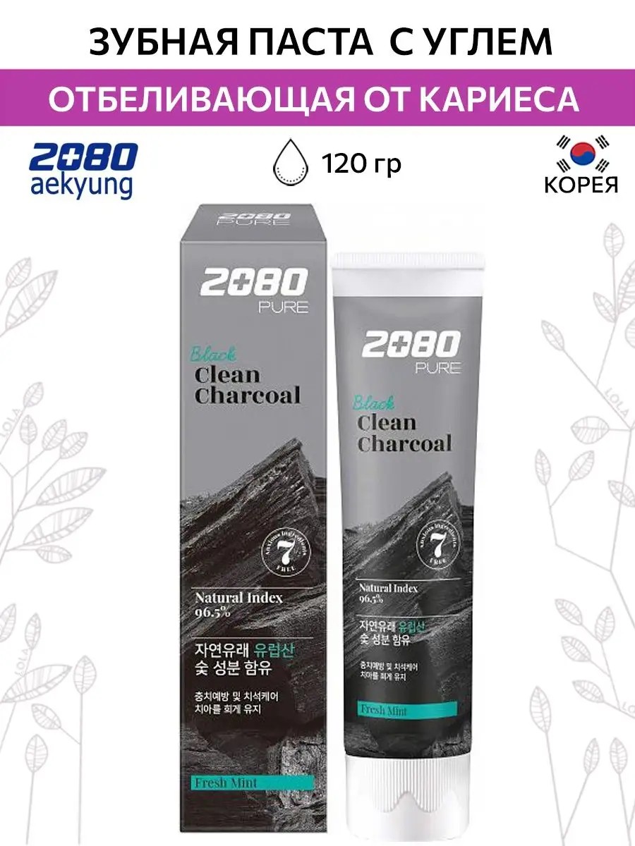 Корейская Отбеливающая зубная паста Aekyung 2080 с УГЛЕМ И МЯТОЙ Black Clean Charcoal Toothpaste 120 гр Корея. В состав зубной пасты 2080 Black Clean Charcoal Toothpaste для отбеливания входит порошок древесного угля. Древесный уголь полирует и отбеливает поверхность зубов, эффективно устраняет налет, предупреждает образование зубного камня и кариеса. Паста активно поглощает неприятные запахи, долго удерживает свежее дыхание и предупреждает пародонтит. Высокое содержание витамина Е помогает устранять проблему гингивита. Зубная паста удаляет бактерии, вызывающие неприятный запах изо рта. Содержит ингредиенты, которые удаляют налет и зубной камень. Отбеливающий фактор пасты устраняет пятна, возникшие в результате употребления чая и кофе. После применения зубной пасты появляется блеск и сияние на поверхности зубов. Паста имеет мягкую структуру и не содержит абразивов, царапающих поверхность зубов. Повышенная чувствительность зубов после применения пасты не наблюдается. Способ применения Выдавить необходимое количество пасты на зубную щетку. Тщательно чистить зубы в течение 2 минуты. Прополоскать рот водой.