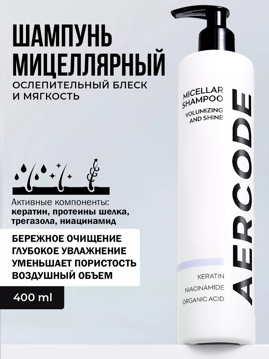 Aercode Мицеллярный шампунь для волос с кератином, амарантом и кокосовым маслом — восстановление и блеск