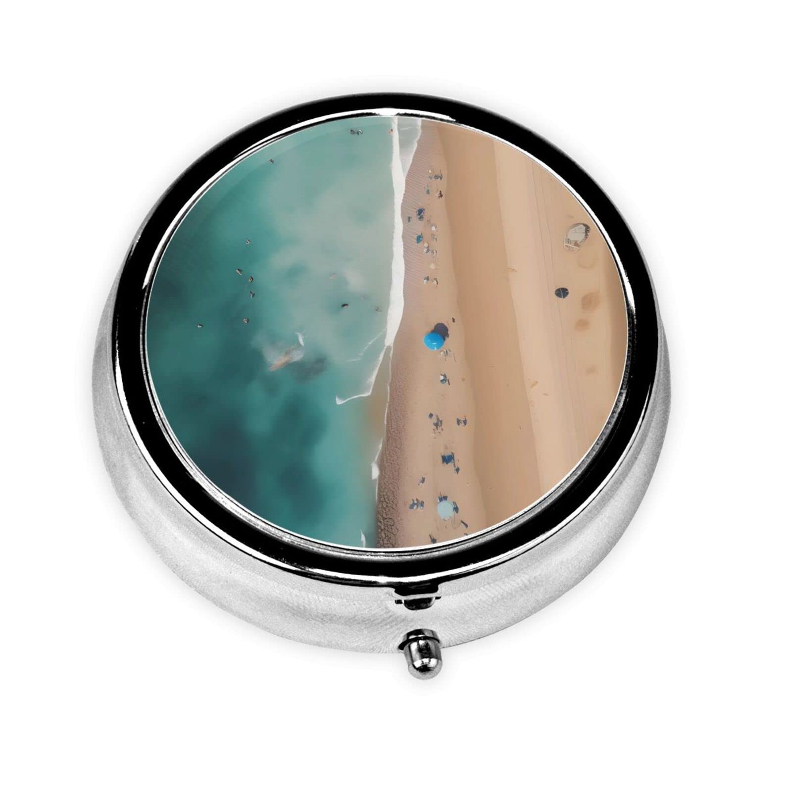 Aerial View Of The Beach Round Mini Pill Box : Our Pill Box Is Made Of Metal Plated With Iron To Resist Daily Wear And Tear And Prolong Its Life.2.0 X 2.0 X 0.7 Inches (Approx. 4.6 X 4.6 X 1.8 Centimeters), This Round Mini Pill Box Is Compact And Lightweight^, With 3 Plastic Compartments And A Hinged Closure Inside. The Round Mini Pill Box Takes Up Little Space And Can Be Carried In Your Pocket Or Purse, Perfect For Traveling.