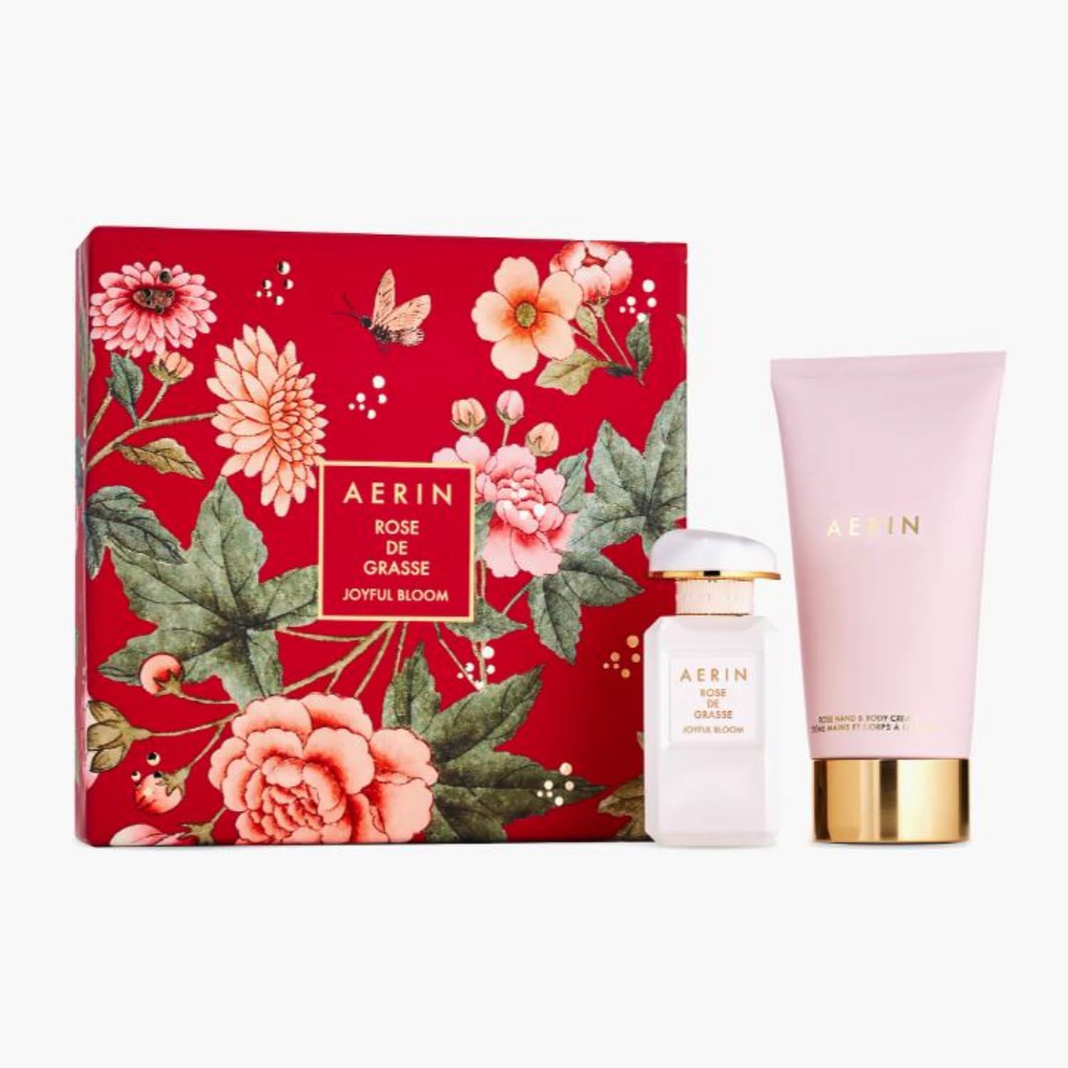 Aerin Rose De Grasse Joyful Bloom 2 Piece Gift Box Set. INCLUDES: 1.7 fl oz / 50 mL travel Eau De Parfum and 5 fl oz / 150 mL Rose Hand & Body Cream. Notes: Top Notes: Italian Bergamot, Blackcurrant Bud, Geranium Leaf. Middle Notes: Indian Rose Bourboniana, Rose Centifolia Grasse, Pink Pepper. Base Notes: Turkish Rose Infusion, Benzoin Siam, Australian Sandalwood. Joyful Bloom is a modern scent offering a dose of happiness. At its heart, lush pink Indian Rose Bourboniana, harvested in Tamil Nadu in the far reaches of Southern India, provides a sweet, honeyed fragrance. Fresh, sparkling Italian Bergamot brings energy to the mix, while spicy green Blackcurrant Bud adds minerality and Pink Pepper infuses vibrance. The overall scent is given depth with warming notes of Australian Sandalwood, Turkish Rose, and Benzoin, which has a spiced resinous quality.NEW IN BOX!!. Joyful Bloom is a modern scent offering a dose of happiness. At its heart, lush pink Indian Rose Bourboniana, harvested in Tamil Nadu in the far reaches of Southern India, provides a sweet, honeyed fragrance. Fresh, sparkling Italian Bergamot brings energy to the mix, while spicy green Blackcurrant Bud adds minerality and Pink Pepper infuses vibrance. The overall scent is given depth with warming notes of Australian Sandalwood, Turkish Rose, and Benzoin, which has a spiced resinous quality. Notes: Top Notes: Italian Bergamot, Blackcurrant Bud, Geranium Leaf. Middle Notes: Indian Rose Bourboniana, Rose Centifolia Grasse, Pink Pepper. Base Notes: Turkish Rose Infusion, Benzoin Siam, Australian Sandalwood. INCLUDES: 1.7 fl oz / 50 mL travel Eau De Parfum and 5 fl oz / 150 mL Rose Hand & Body Cream. Aerin Rose De Grasse Joyful Bloom 2 Piece Gift Box Set.