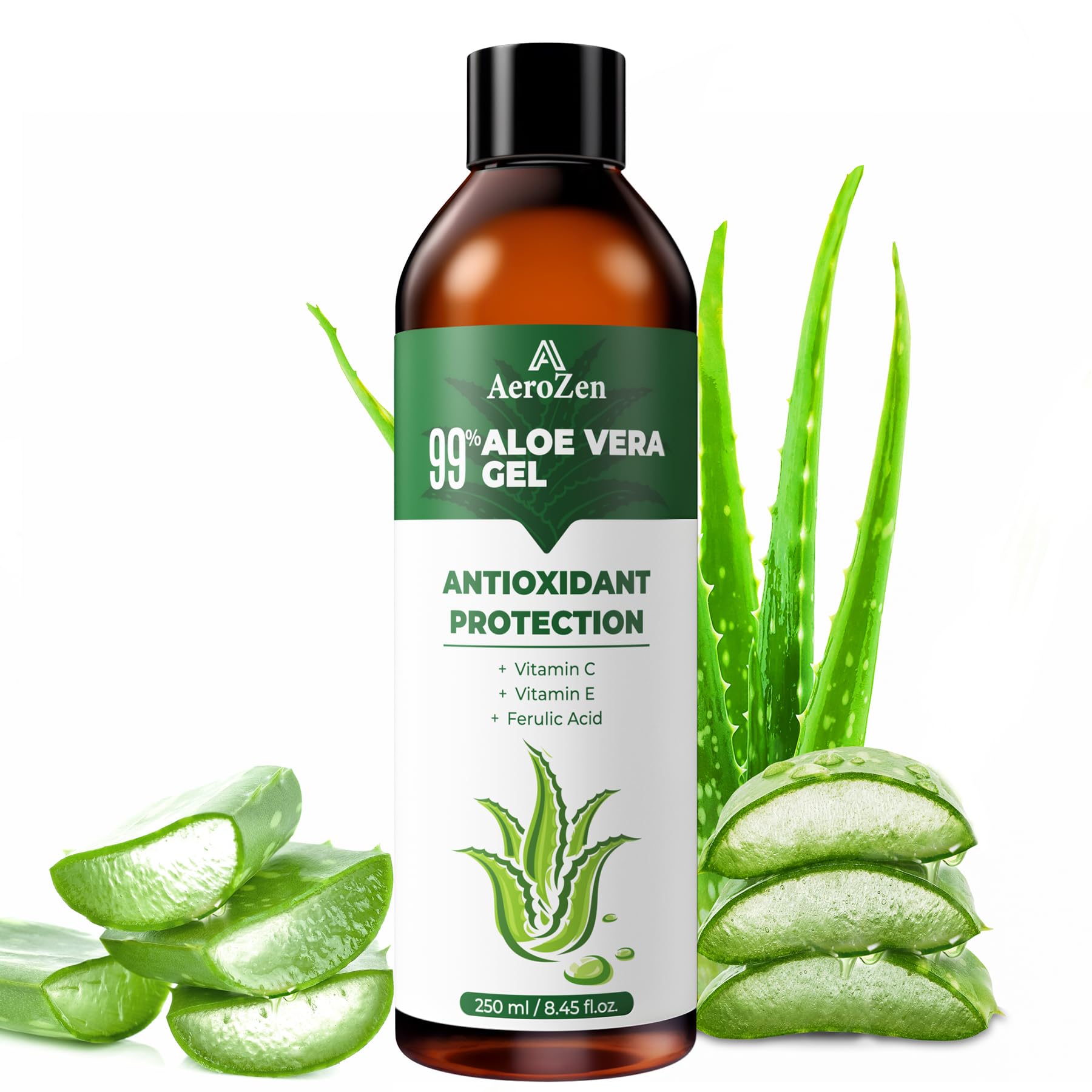 Aero Zen 99% Natural Aloe Vera Gel | Daily Hydration & After-Sun Relief | Lightweight Alcohol-Free Formula Deeply and Quickly Soothes Skin Suitable for Face/Body/Hair - 8.45 fl oz 8.45 Fl Oz (Pack of 1)