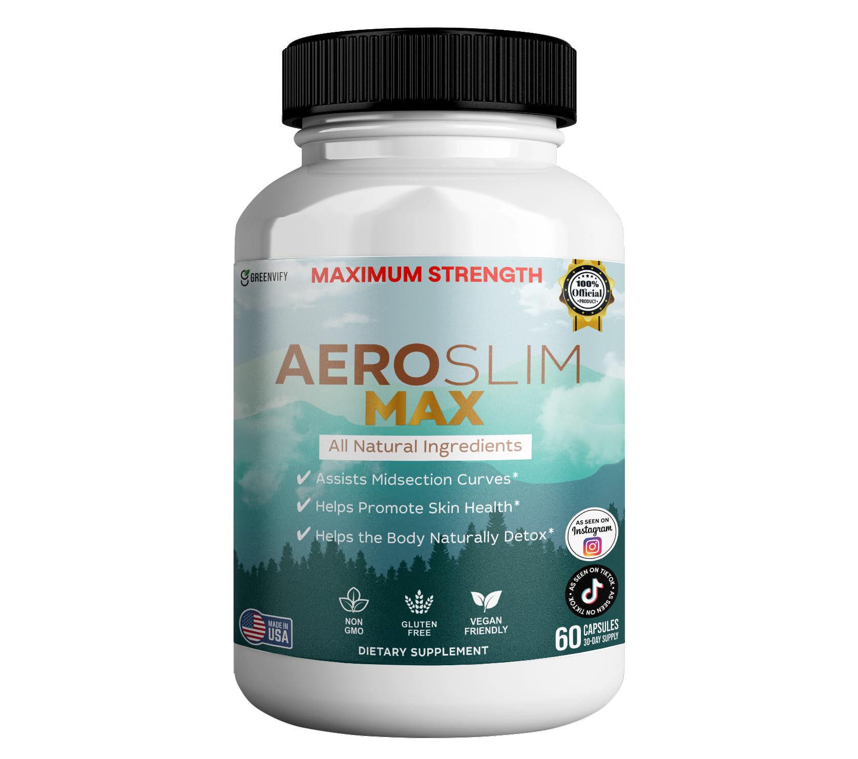 Aeroslim Max Natural Dietary Supplement 60 Capsules Maximum Strength Vegan Gluten Free Non-GMO Made in USA (1)