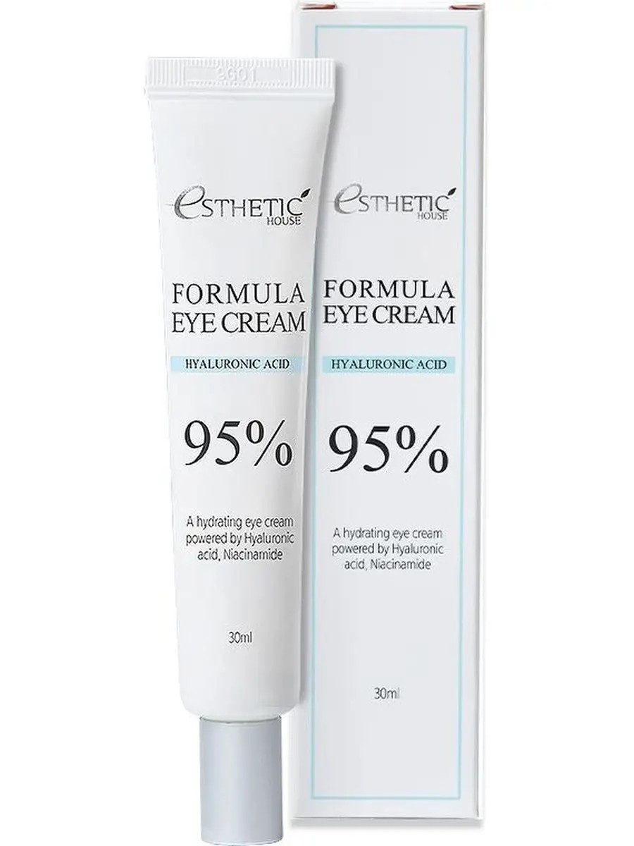 Esthetic House Formula Eye Cream Hyaluronic Acid 95% Anti-Aging Korean Cream for the Skin Around the Eyes, 30 ml. Hyaluronic acid in this cream intensely moisturizes and nourishes dry and dehydrated skin around the eyes, preventing moisture loss. It soothes the delicate skin around the eyes, improves firmness and elasticity, and reduces the depth of wrinkles. Niacinamide in this cream brightens dark circles and evens out skin tone. Apply the required amount of cream to the eye area and distribute it with light tapping movements of your fingertips along massage lines from the outer corner of the eye to the inner corner (lower eyelid), and from the inner corner to the outer corner in the brow area.