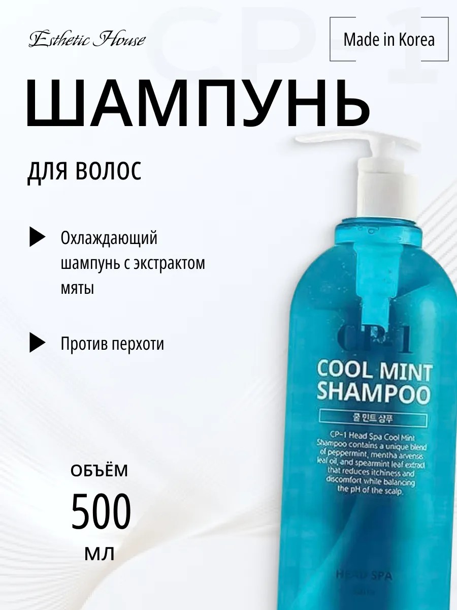 Esthetic House CP-1 Head Spa Cool Mint Shampoo – это охлаждающий шампунь с экстрактом мяты.