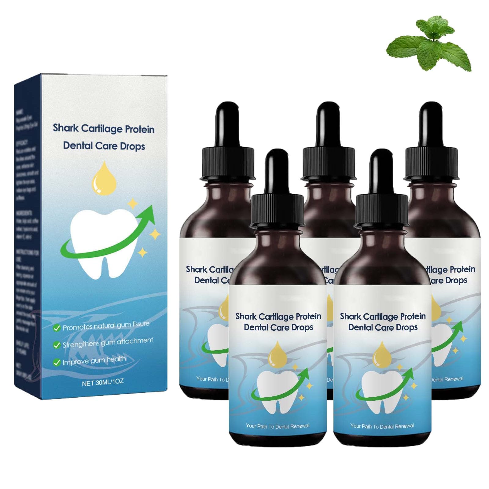 Name: shark cartilage protein tooth care drops Net content: 30ml Size: 2.8x10.3cm 1.11x4.06inch Main components: shark cartilage protein, xylitol, citric acid, peppermint extract, German chamomile Use: As a mixture: Mix the recommended amount of drops with water or your preferred mouthwash. Rinse the mixture thoroughly in the mouth for at least 30 seconds. Spit out the mixture and avoid eating or drinking during the next 30 minutes to ensure optimal recording. Direct application: Apply the recommended number of drops directly to your teeth and gums. Massage the drops with clean fingertips or a soft toothbrush gently into the affected areas. Let the product move in for at least 30 minutes before eating or drinking. Packing list: 1 2 3 piece of shark-cartilage protein tooth care dropsEasy CarrySay goodbye to tooth sensitivity with this gentle tooth whitening product, which is hard to stain and gently to your teeth.Not easy to leak and easy to carry, its small and compact size and unique design perfect for at home and when traveling.Fresh breathhelps you to eliminate bad breath, to relieve tooth sensitivity, to repair damage and gum return.The added menthol can make your breath fresher.TEETH COLOR CORRECTOR SERUMTeeth Color Corrector Serum uses color correction technology, directly opposite yellow on the color wheel, and they are complementary colors.Whitening Teeth Serum contains purple water -soluble, which can be applied to each yellow undertones on the teeth, effectively correct yellow teeth.Strengthen Gum AttachmentStrengthens The Atachment Between Gums and Teeth.By promoting cell regeneration and collagen production, the drops help to restore the correct attachment of the gums, prevent further gum decline and to improve the general health of the gums.Revitalize your gumsGum regrowth drops provide important nutrients directly to your gum tissue and promote healthy growth and repair.Name: Haifischknorpelprotein Zahnpflegetropfen Netto Inhalt: 30ml Größe: 2.8x10.3cm 1.11x4.06inch Hauptbestandteile: Haifischknorpelprotein, Xylitol, Zitronensäure, Pfefferminzextrakt, deutsche Kamille Verwendungsweise: Als Mixtur: Mischen Sie die empfohlene Menge an Tropfen mit Wasser oder Ihrer bevorzugten Mundspülung. Spülen Sie die Mischung mindestens 30 Sekunden lang gründlich im Mund. Spucken Sie die Mischung aus und vermeiden Sie es, während der nächsten 30 Minuten zu essen oder zu trinken, um eine optimale Aufnahme zu gewährleisten. Direkte Anwendung: Tragen Sie die empfohlene Anzahl von Tropfen direkt auf Ihre Zähne und Ihr Zahnfleisch auf. Massieren Sie die Tropfen mit sauberen Fingerspitzen oder einer weichen Zahnbürste sanft in die betroffenen Stellen ein. Lassen Sie das Produkt mindestens 30 Minuten lang einziehen, bevor Sie essen oder trinken. Packungsliste: 1 2 3 Stück Haifischknorpel-Protein ZahnpflegetropfenEasy CarryVerabschieden Sie sich von Zahnempfindlichkeit mit diesem sanften Zahnaufhellungsprodukt, das hart zu Flecken und sanft zu Ihren Zähnen ist. Nicht leicht auslaufen und leicht zu tragen, seine kleine und kompakte Größe und einzigartiges Design perfekt für zu Hause und auf Reisen. Frischer AtemHilft Ihnen, schlechten Atem zu beseitigen, Zahnempfindlichkeit zu lindern, Schäden und Zahnfleischrückgang zu reparieren. Das hinzugefügte Menthol kann Ihren Atem frischer machen. Teeth Color Corrector SerumTeeth Color Corrector Serum nutzt die Farbkorrekturtechnologie, direkt gegenüber von Gelb auf dem Farbrad, und sie sind komplementäre Farben. Whitening Teeth Serum enthält lila wasserlöslich, die auf die Zähne zu jeder gelben Untertönen angewendet werden kann, effektiv zu korrigieren gelbe Zähne. Strengthen gum attachmentStrengthens the attachment between gums and teeth. Durch die Förderung der Zellregeneration und der Kollagenproduktion tragen die Tropfen dazu bei, die richtige Befestigung des Zahnfleisches wiederherzustellen, weiteren Zahnfleischrückgang zu verhindern und die allgemeine Gesundheit des Zahnfleisches zu verbessern. Revitalisieren Sie Ihr ZahnfleischGum Regrowth Drops liefern wichtige Nährstoffe direkt an Ihr Zahnfleischgewebe und fördern gesundes Wachstum und Reparatur.Aexzr Shark Cartilage Protein Dental Care Drops,Shark Cartilage Protein Drops for Dental Regrowth,Gum Regrowth Drops,Teeth Color Corrector Serum,Tooth Whitening Serum,Tooth Stain Removal (5PC)