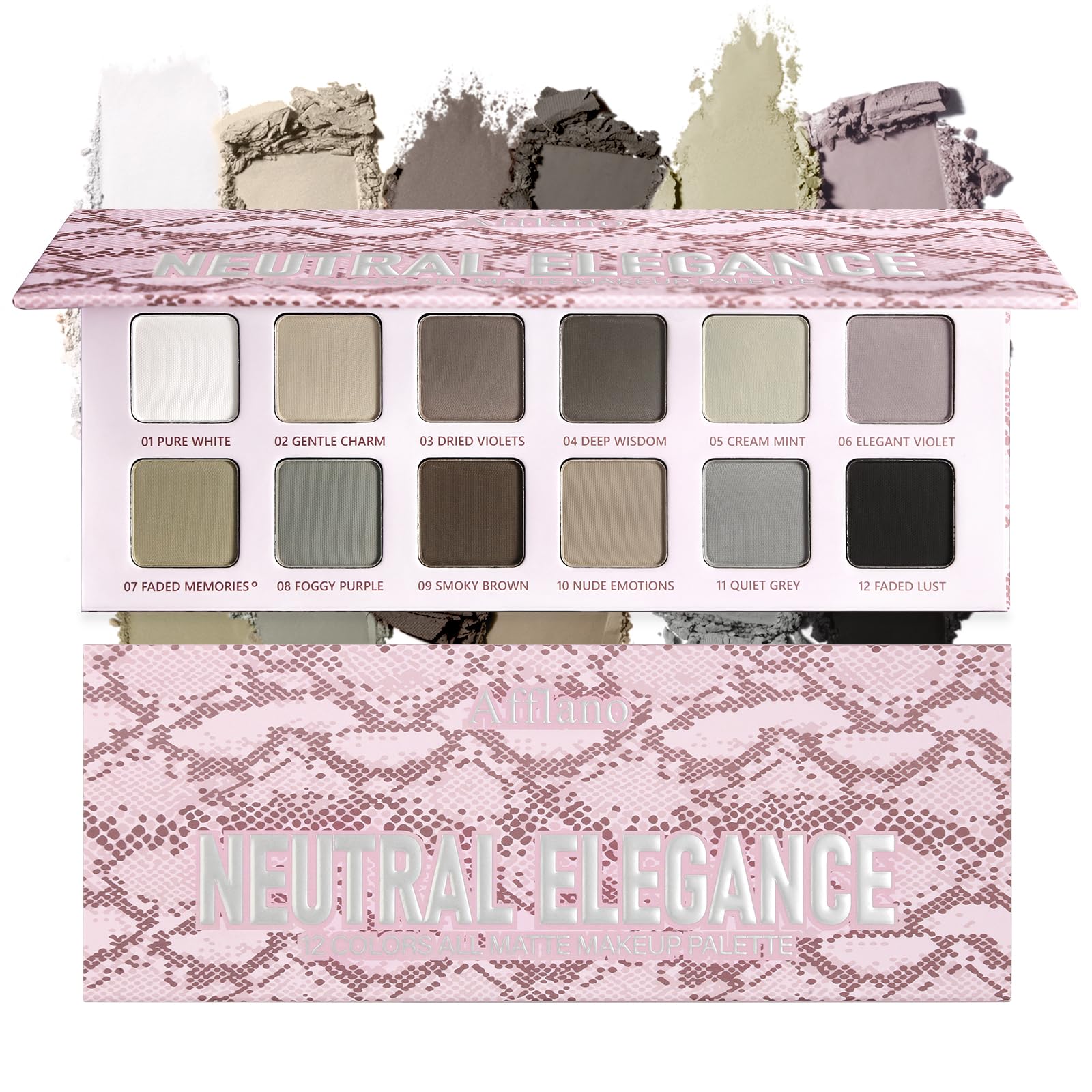 : Discover the Afflano All Matt Eyeshadow Palette: a versatile collection of 12 matte shades perfect for both everyday and dramatic looks. From pure white to smoky gray, this palette offers a balanced mix of neutral and cool tones. The palette contains soft nude shades, earthy browns, and elegant grays that are perfect for various occasions. The vegan formula ensures long-lasting wear and blends easily. Each eyeshadow is carefully numbered and named, from "01 Pure White" to "11 Quiet Grey," making application particularly user-friendly. The matte texture allows for both subtle daytime looks and intense evening styles. The compact palette with a built-in mirror makes it the perfect travel companion. How to Use: Apply with an eyeshadow brush and blend for an even finish. Can be used wet to increase intensity. Use with a primer for extended wear.Relax every day – Ditch your dark museum: Leave nude and vanilla neutrals behind at the office. Our 12-shade matte rebellion isn't just makeup, it's a mood. Swipe Graveyard Grey across your lids for evocative gothic poetry, blend Smokehouse Purple into the crease for a mystical emo night, or draw sharp lines for a '90s grunge revival with the obsidian Midnight. Get ready for Halloween parties with the contours of Vampire Veil and the accents of Witch's Brew. Talc-free matte eyeshadow palette – Gentle on skin: The Afflano matte eyeshadow palette contains a 100 talc-free formula, perfect for sensitive and mature skin. Enriched with shea butter and vitamin E, this vegan, cruelty-free palette offers ultra-blendable, low-saturation shades, ranging from delicate nudes to smoky grays. Cool neutrals (cement gray, mauve taupe) help reduce puffiness and give eyes a natural definition. This long-lasting matte eyeshadow palette won't irritate the skin or settle into fine lines. Luxury Matte Eyeshadow Palette - Features: Soft, velvety texture for one-swipe pigmentation and no fallout. Slim packaging with a mirror, perfect for: 1) makeup artists who need reliable matte eyeshadows, 2) a basic eyeshadow palette for makeup beginners, and 3) a nude eyeshadow palette for mature women who wear natural makeup every day. The secret to looking 10 years younger – A must-have for mature skin: For women over 35, it's the fountain of youth without the scales. Our micro-fine pigments (smoky taupe, dusty lavender) blur fine lines instead of settling into them. The matte eyeshadow palette for wrinkles over 50: The eyeshadows in cool gray tones help combat redness on the eyelids (hello, tired maternity!), while the velvety texture glides onto textured skin. Pro tip: Use Ash Brown to fill in sparse brows no more harsh pencils. Anti-aging eyeshadow palette, wrinkle-free makeup for hidden eyes, the perfect makeup gift for Mother's Day. Professional Matte Eyeshadow Palette with Cool Tones - From Day to Night: This matte palette, developed by makeup artists, offers highly pigmented, waterproof shades for every occasion. The balanced cool to neutral tones create effortless looks suitable for the office or dramatic smoky eyes. The velvety texture applies seamlessly and without smudging. Compact size with a mirror - perfect for traveling professionals and makeup beginners. Its long-lasting formula lasts over 12 hours when used with foundation.Description du produit Découvrez la palette de fards à paupières Afflano All Matt : une collection polyvalente de 12 teintes mates parfaites pour les looks quotidiens et dramatiques. Du blanc pur au gris fumé, cette palette offre un mélange équilibré de tons neutres et froids. La palette contient des tons nude doux, des tons marron terreux et des gris élégants qui sont parfaits pour différentes occasions. La formule végétalienne garantit une longue durée de vie et se mélange facilement. Chaque fard à paupières est soigneusement numéroté et nommé, de « 01 Pure White » à « 11 Quiet Grey », ce qui rend l'application particulièrement conviviale. La texture mate permet à la fois des looks discrets de jour et des styles intenses de soirée. La palette compacte avec miroir intégré en fait le compagnon idéal pour les déplacements. Mode d'emploi Appliquer avec un pinceau pour fard à paupières, mélanger pour une finition homogène. Peut être utilisé humide pour augmenter l'intensité Utilisation avec apprêt pour une utilisation prolongée.Détendez-vous au quotidien - Débarrassez-vous de votre musée sombre : laissez derrière vous des tons neutres nude et vanille au bureau. Notre rébellion mate en 12 teintes n'est pas seulement un maquillage, mais aussi une ambiance. Faites glisser Graveyard Grey sur vos paupières pour une poésie gothique émouvante, fondez Smokehouse Purple dans les plis des paupières pour une nuit mystique emo ou tracez des lignes nettes pour un revival grunge des années 90 avec l'obsidienne Midnight Craquez pour les fêtes d'Halloween avec les contours de Vampire Veil et les accents Witch's Brew. Palette d'ombres à paupières mates sans talc - Doux pour la peau : la palette d'ombres à paupières mates Afflano contient une formule 100 sans talc, parfaite pour les peaux sensibles et matures. Enrichie en beurre de karité et en vitamine E, cette palette végétalienne sans cruauté envers les animaux offre des teintes ultra-miscibles et faiblement saturées, allant des tons nudes délicats aux gris fumés. Les tons neutres froids (gris ciment, mauve taupe) aident à réduire les gonflements et donnent aux yeux une définition naturelle. Palette de fards à paupières mat longue durée qui n'irrite pas la peau et ne se dépose pas en fines ridules. ??? Palette de fards à paupières mat de luxe - Caractéristiques : texture douce et veloutée pour : pigmentation en un seul geste, pas de chute. Emballage fin avec miroir, parfait pour : 1) les maquilleurs qui ont besoin de fards à paupières mats fiables, 2) fard à paupières de base pour les débutants en maquillage et 3) palette de fards à 