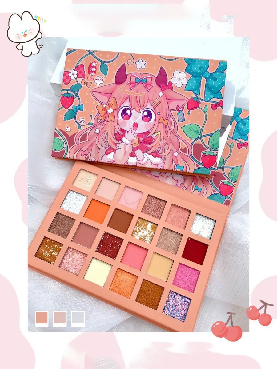 A delicate colored eyeshadow palette with an anime-style mirror. It features 24 rich shades in two finishes: matte and shimmer. The loose powder eyeshadows blend beautifully with a brush or sponge. For best staying power, we recommend applying them over a primer or foundation. They'll help you create any look, from daytime makeup to an evening cocktail party. This colorful palette includes both bright neon shades and soft pastels like pink, peach, and beige. The glitter colored palette is perfect for creating a striking evening look or highlighting your eyes at a party. The nude glitter colored palette features more muted and delicate shades, perfect for a romantic look. This palette contains only high-quality eyeshadows that are easy to apply and long-lasting. No matter what look you're trying to create, these shadows will help you achieve the look you want.