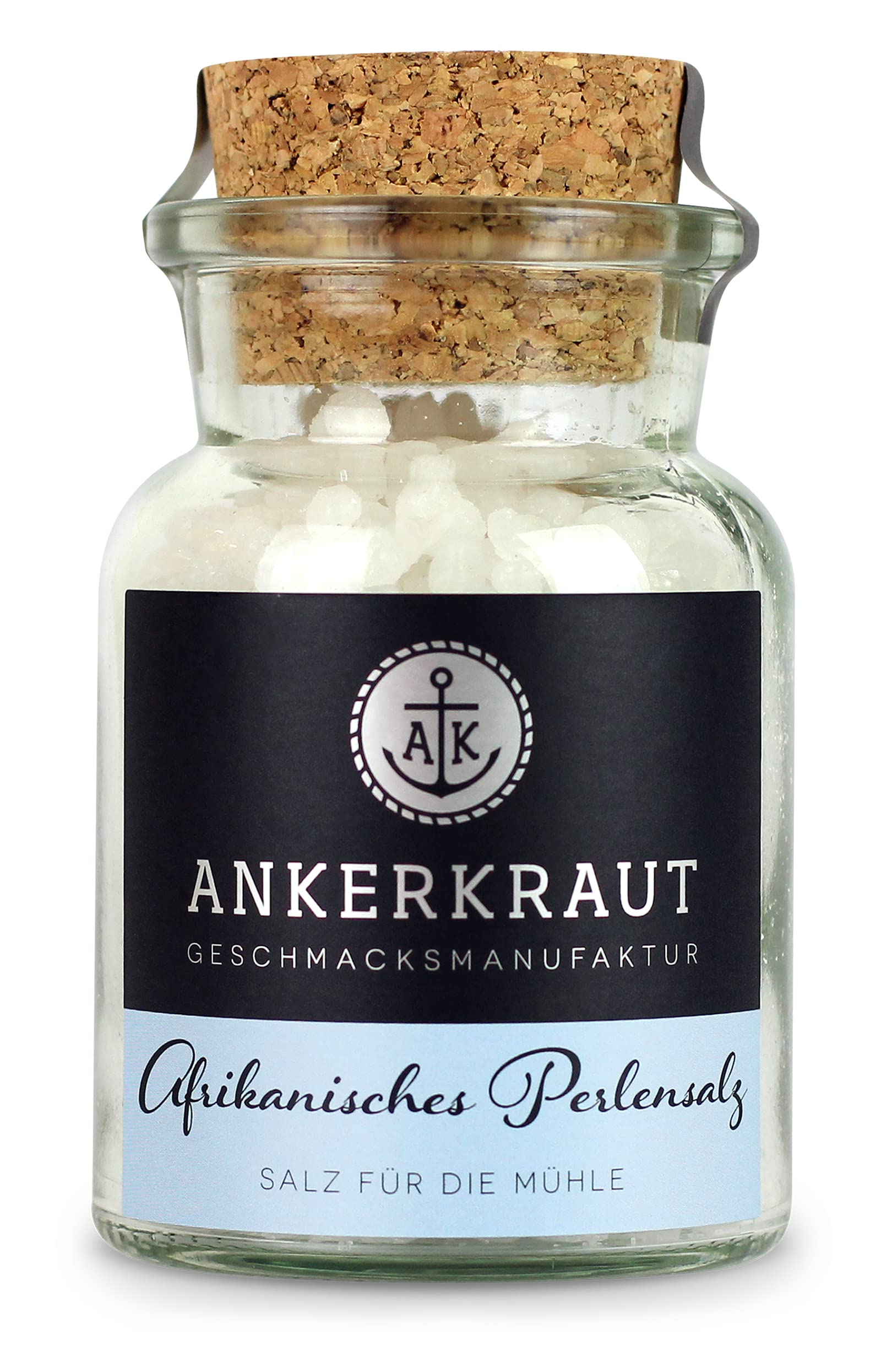 African Pearl Salt, Whole Simple and elegant: With our African Pearl Salt, you enhance your glass spice mill. This extraordinary salt from southwest Africa is created by the salt-rich seawater of the South Atlantic, dried by the sun and strong winds of Africa. The beautiful salt pearls are similar to fleur de sel, but are a little harder, so you should not use them for cooking, but ideally place them on the table in a transparent spice mill as a finishing touch to your dishes. African Pearl Salt is a little softer, so it goes perfectly with bread and olive oil. No garlic. No flavor enhancers. No additives. No sugar. No onions. INGREDIENTS sea salt. Allergen: May contain traces of mustard and celery. DIRECTIONS FOR USE As needed. [Bread and Salt] Bread and salt are part of a traditional use and a symbolic gift for moving, housewarming or wedding simple and elegant: our African pearl salt in the cork glass is a great alternative to classic salt and will attract everyone's attention. [Origin] In Africa you can discover green rainforests, deep blue rivers, black earth and red sand. In the unspoiled landscapes of southwest Africa, our African pearl salt is created for this, the salt-rich seawater of the South Atlantic is dried by the sun and strong winds of Africa. [BEST QUALITY] Without flavor enhancers and artificial colors the ingredients are freshly prepared, processed into the classic-elegant cork jars and shipped to customers after a very short storage period. [USE] Due to their beautiful appearance, these African pearls are hardly used for cooking, but mainly with pepper in a salt and pepper mill to "finish" food Particularly good taste, a pinch of salt to simple bread with tasty olive oil In this combination, we can not get too much of our salt. [Flavor] Many of us know Africa only from novels and often wish to go beyond Africa Although our African pearl salt does not take us to Africa, it can create a little African flair on our plates through gentle drying under the African sun, the salt receives its pearl shape and its special, salty taste. Sel perlé africain, entier Simple et élégant : avec notre sel perlé africain, vous mettez en valeur votre moulin à épices en verre. Ce sel extraordinaire du sud-ouest de l'Afrique est créé par l'eau de mer riche en sel de l'Atlantique Sud, séchée par le soleil et les vents forts de l'Afrique. Les belles perles de sel sont semblables à la fleur de sel, mais sont un peu plus dures, vous ne devriez donc pas les utiliser pour cuisiner, mais au mieux les placer sur la table dans un moulin à épices transparent comme finition pour vos plats. Le sel perlé africain est un peu plus doux, il se marie donc parfaitement avec le pain et l'huile d'olive. Sans ail. Sans exhausteur de goût. Sans additifs. Sans sucre. Sans oignons. INGRÉDIENTS sel de mer. Allergène: Peut contenir des traces de moutarde et de céleri. MODE D'EMPLOI Selon les besoins. [pain et sel] Le pain et le sel font partie d'une utilisation traditionnelle et un cadeau symbolique pour déménager, pendaison de crémaillère ou mariage simple et élégant : notre sel perlé africain dans le verre à liège est une excellente alternative au sel classique et attirera tous les regards. [Origine] En Afrique, vous pouvez découvrir les forêts tropicales vertes, les rivières bleu profond, la terre noire et le sable rouge. Dans les paysages préservés du sud-ouest de l'Afrique, notre sel perlé africain est créé pour cela, l'eau de mer riche en sel de l'Atlantique Sud est séchée par le soleil et les vents forts de l'Afrique. [MEILLEURE QUALITÉ] Sans exhausteur de goût et colorants artificiels les ingrédients sont fraîchement préparés, transformés dans les bocaux en liège klassich-élégants et expédiés aux clients après une très courte période de stockage. [UTILISATION] En raison de leur bel aspect, ces perles africaines sont à peine utilisées pour cuisiner, mais principalement avec du poivre dans un moulin à sel et à poivre pour «finir» des aliments Particulièrement bon goût, une pincée de sel au pain simple avec de l'huile d'olive savoureuse Dans cette combinaison, nous ne pouvons pas obtenir trop de notre sel. [Saveur] Beaucoup d'entre nous connaissent l'Afrique uniquement à partir de romans et souhaitent souvent aller au-delà de l'Afrique Bien que notre sel perlé africain ne nous amène pas en Afrique, il peut créer un peu de flair africain sur nos assiettes grâce au séchage doux sous le soleil de l'Afrique, le sel reçoit sa forme perle et son goût spécial et salé.