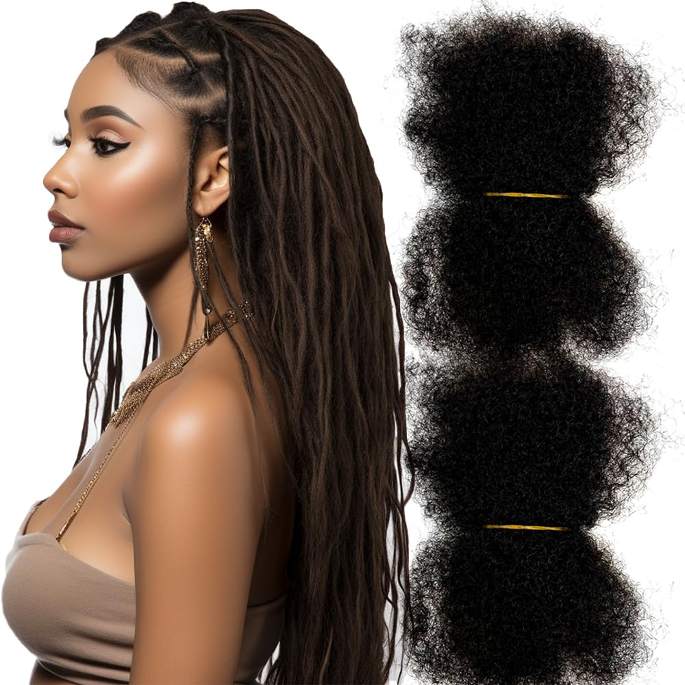 Afro Kinky Bulk Echthaar für die Herstellung von Locs, Reparatur von Dreadlocks, Twist Braiding, 2 Stück Pakcge kann gefärbt und gebleicht werden, natürliches Schwarz 1B 20,3 cm 20,3 cm Natürliches Schwarz 1b