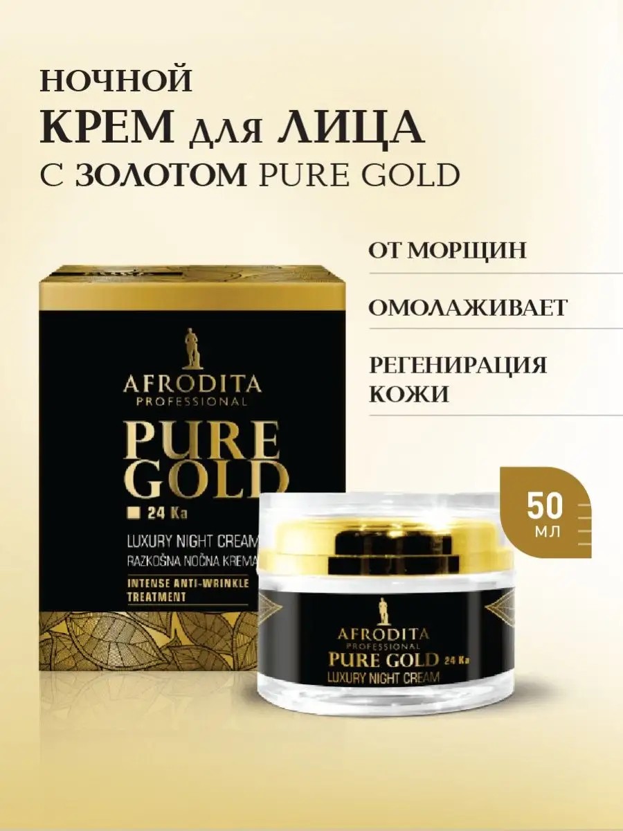 Антивозрастной крем для лица с кусочками золота для нормальной, сухой и зрелой кожи с признаками старения после 40 лет. Значительно улучшает текстуру кожи и поддерживает способность к восстановлению, разглаживает морщины и заметно улучшает мышечный тонус. Золото оказывает омолаживающее действие против мимических морщин и подтягивает овал, лифтинг эффект. Изофлавоны это растительный эстроген, которые химически похожи на женские гормоны, в более глубоких слоях кожи они стимулируют синтез коллагена и эластина. Керамиды способствуют естественному процессу восстановления гидролипидного барьера в ороговевших слоях эпидермиса, защищают от процесса старения, обеспечивают длительное увлажнение и защищают от вредных воздействий. Ночной уход для красоты от профессиональной косметики Афродита подходит для женщин и девушек. Веган косметика из Словении.