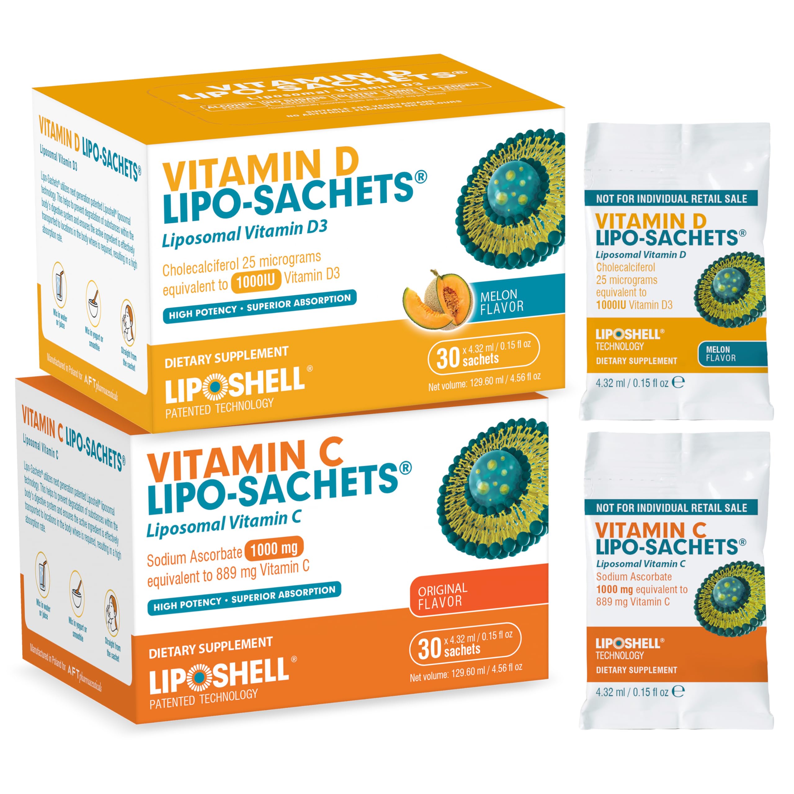 Lipo-Sachets Vitamin C D Gel packets utilize patented Liposhell technology to transport active ingredients to where your body needs them most by encapsulating and protecting the natural vitamins C from degradation in the digestive system. This allows for targeted release higher absorption compared to standard vitamins.