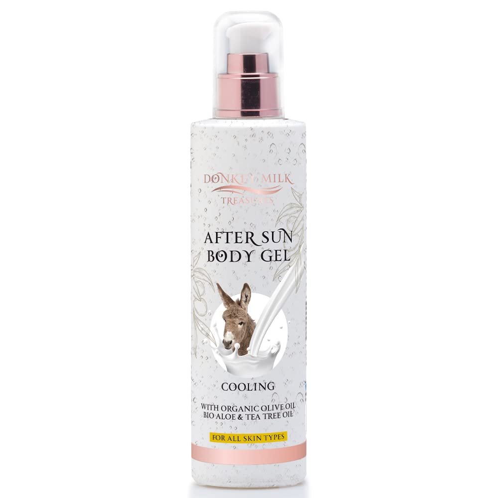 High-quality After Sun Body Gel Donkey Milk Treasures Cooling 250 ml Soothing sun body lotion for all skin types. With 100 Greek donkey milk through cryogenic treatment , organic aloe vera, tea tree oil and organic olive oil. Donkey milk has been considered an elixir for skin care and beauty since ancient times. Contains proteins and amino acids that retain moisture in the skin and improve the function of collagen and elastin. Together with organic olive oil, moisturizing aloe, natural antibacterial tea tree oil, vitamins A, E, F, soothing, refreshing, moisturizing active ingredients and panthenol, it is a highly effective product that is immediately absorbed by the skin. Non-sticky, immediately absorbed and non-greasy. Refreshes, soothes and revitalizes the skin, leaving it silky soft and cool. Use: distribute evenly over the body after sunbathing and repeat regularly. ( ) Special treatment to preserve the unique caring properties of donkey milk. Clinically developed and dermatologically tested. Key points for the Donkey Milk Treasures Natural Beauty Care System. Not tested on animals. Free from parabens. Free from DEA and cocamides. Free from phthalates. Free from genetically modified plants. Free from toxic dyes. Free from isopropyl alcohol. Silicone-free.Donkey Milk Treasures are great to give and wonderful to receive. Suitable for all skin types. Regenerates, hydrates, rejuvenates and makes the skin silky smooth. 100 Greek donkey milk with vitamins A, E F and organic olive oil. PHARMAID Donkey Milk Treasures high-quality aftersun body gel donkey milk treasures with Greek donkey milk.After Sun Body Gel Donkey Milk Treasures Cooling 250 ml, Pharmaid Hoogwaardige After Sun Body Gel Donkey Milk Treasures Cooling 250 ml Kalmerende zonnebodylotion voor alle huidtypes. Met 100 Griekse ezelmelk door cryogene behandeling , biologische aloë vera, theeboomolie en biologische olijfolie. Ezelsmelk wordt sinds de oudheid beschouwd als elixer voor huidverzorging en schoonheid. Bevat eiwitten en aminozuren die het vocht in de huid houden en de werking van collageen en elastine verbeteren. Samen met biologische olijfolie, hydraterende aloë, natuurlijke antibacteriële theeboomolie, vitamine A, E, F, rustgevende, verfrissende, hydraterende werkzame stoffen en panthenol is het een zeer effectief product dat direct door de huid wordt opgenomen. Plakt niet, trekt onmiddellijk in en maakt niet vet. Verfrist, kalmeert en revitaliseert de huid en maakt deze zijdezacht en koel. Gebruik: na het zonnebaden gelijkmatig over het lichaam verdelen en regelmatig herhalen. ( ) Speciale behandeling voor het behoud van de unieke verzorgende eigenschappen van ezelmelk. Klinisch ontwikkeld en dermatologisch getest. Belangrijke punten voor het Donkey Milk Treasures Natural Beauty Care System. Niet getest op dieren. Vrij van parabenen. Vrij van DEA en cocamiden. Vrij van ftalaten. Vrij van genetisch gemodificeerde planten. Vrij van giftige kleurstoffen. Vrij van isopropylalcohol. Siliconenvrij.Donkey Milk Treasures zijn geweldig om te geven en fantastisch te ontvangen. Geschikt voor alle huidtypes. Regenereert, hydrateert, verjongt en maakt de huid zijdezacht glad. 100 Griekse ezelinnenmelk met vitaminen A, E F en biologische olijfolie. PHARMAID Donkey Milk Treasures hoogwaardige aftersun bodygel donkey milk treasures met Griekse ezelinnenmelk.
