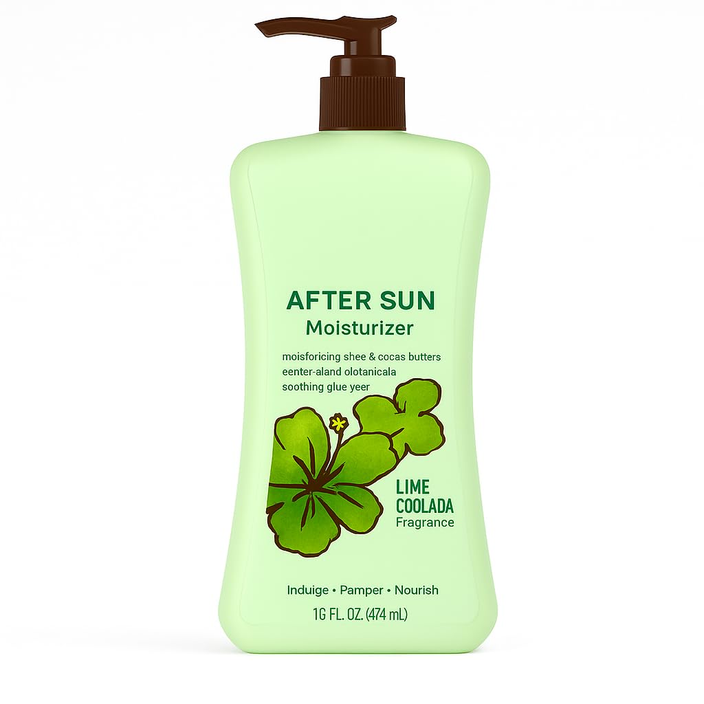 Exposure to the sun can dehydrate and damage your skin, leaving it dry, tight, and irritated. Our After Sun Moisturizing Lotion is expertly formulated to restore hydration and soothe discomfort with a blend of aloe vera, coconut extract, and skin-conditioning emollients. Perfect for daily use, especially following sun exposure, this lotion provides long-lasting moisture and a refreshing sensory experience. Tropical Hydration, Anytime You Need It This lotion offers more than just post-sun care. With a deliciously refreshing Lime Coolada scent, it instantly uplifts your senses and revitalizes your body. The silky texture absorbs quickly without leaving behind a sticky or greasy feeling, making it suitable for everyday use as a full-body moisturizer. Key Moisturizing Ingredients: Aloe Vera: Known for its soothing and healing properties, aloe helps cool sun-exposed skin and reduce redness. Coconut Extract: Naturally hydrating and skin-softening, coconut helps restore moisture and prevent dryness. Vitamin E: A powerful antioxidant that helps protect the skin from free radicals and environmental stressors. Glycerin: A skin-conditioning agent that helps draw moisture into the skin and retain hydration throughout the day. Benefits You Can See and Feel: Rehydrates and soothes dry, tight, sun-damaged skin Non-comedogenic formula won't clog pores Great for daily moisturizing—even without sun exposure Suitable for all skin types including sensitive skin Free from harsh chemicals like parabens and phthalates Usage Instructions: Apply generously to clean skin after sun exposure or as a daily moisturizer. Gently massage in circular motions until fully absorbed. Use as often as needed for best results. Perfect for Every Season While it excels as an after-sun treatment, this moisturizing lotion can be used year-round to fight seasonal dryness caused by heat, cold, or wind. Its non-greasy finish makes it comfortable for day or night application. Why Customers Love It: Lightweight yet deeply moisturizing Leaves skin silky smooth Doesn't stain clothing Smells like a tropical vacation Large, value-sized bottle lasts for weeksFamily-Sized 16 fl oz Bottle: Generous pump bottle ideal for daily body moisturizing. Keeps skin looking healthy and radiant year-round—after sun exposure or any time. Ideal for All Skin Types: Gentle, non-irritating formula suitable for sensitive, normal, dry, and combination skin. Great for use after sunbathing, swimming, or outdoor activities. Deep Hydration for Dry Skin: Moisturizes deeply to combat dryness, flaking, and rough texture. Leaves your skin soft, smooth, and hydrated without greasy residue. Refreshing Lime Coolada Scent: Invigorate your senses with a tropical lime coolada fragrance that leaves your skin smelling fresh, clean, and ready for any occasion—beach or boardroom. Instant Relief After Sun Exposure: Formulated with skin-calming ingredients like aloe and coconut extract, this lightweight lotion helps soothe sun-exposed skin and replenish lost moisture.