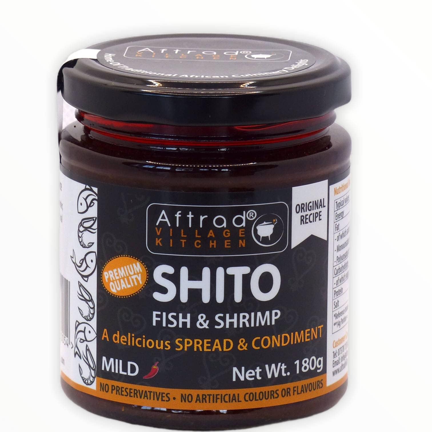 This is the popular Ghanaian black pepper sauce made with chilies, smoked dried fish, and shrimp. Aftrad Village Kitchen Shito is made with pure ingredients and a good fish-to-shrimp ratio, guaranteeing a delicious and flavorful taste. Our sauce is homemade and made in small batches to ensure consistent quality. No artificial preservatives are added preservation is achieved through our cooking and bottling process. INGREDIENTS Smoked fish, smoked shrimp, fresh ginger, fresh onions, fresh garlic, cayenne pepper, natural spices, rapeseed oil