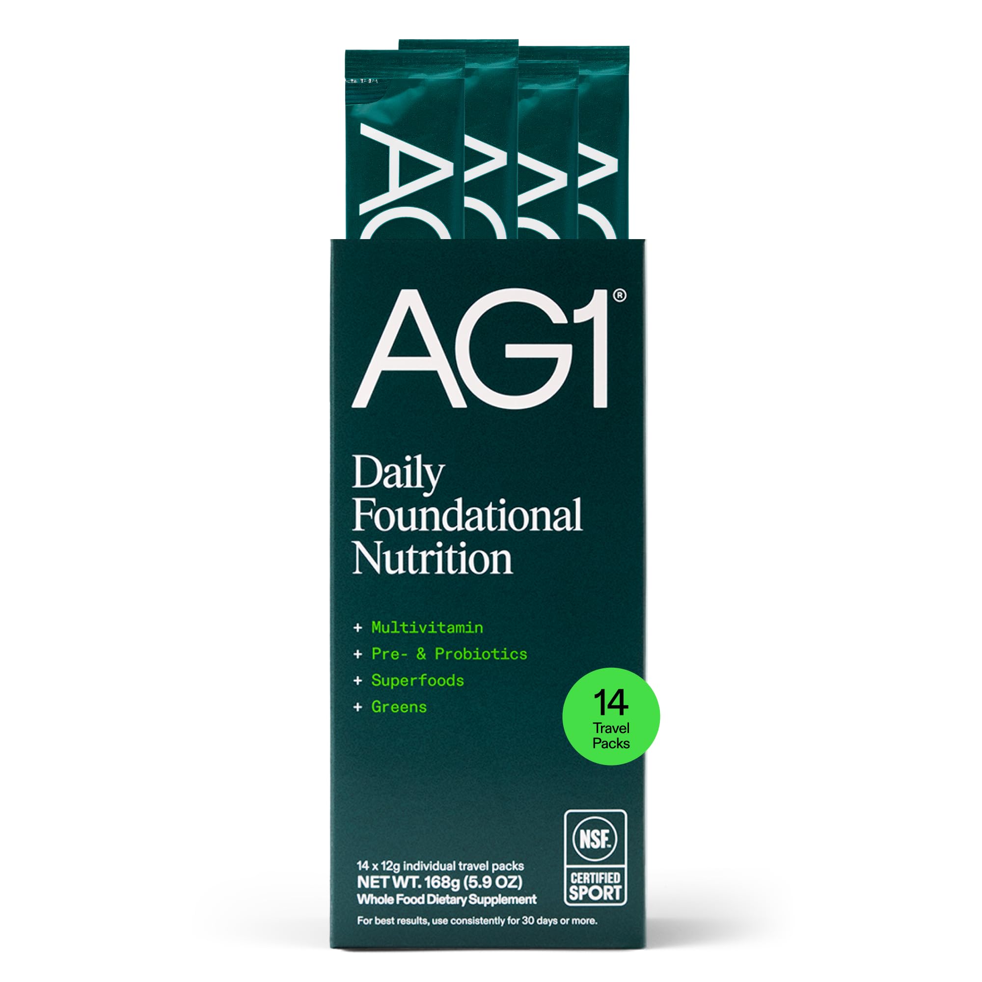 AG1 Athletic Greens Powder Supplement Improve Gut Health Multivitamin Probiotic Gluten Free Vegan and Keto Friendly 75 Vitamins (Travel Packs 14 Count) - Classic Formula