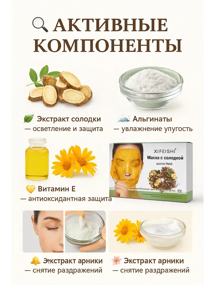 | Полное наименование товара | Маска для лица Алгинатная с солодкой XI FEI SHI |