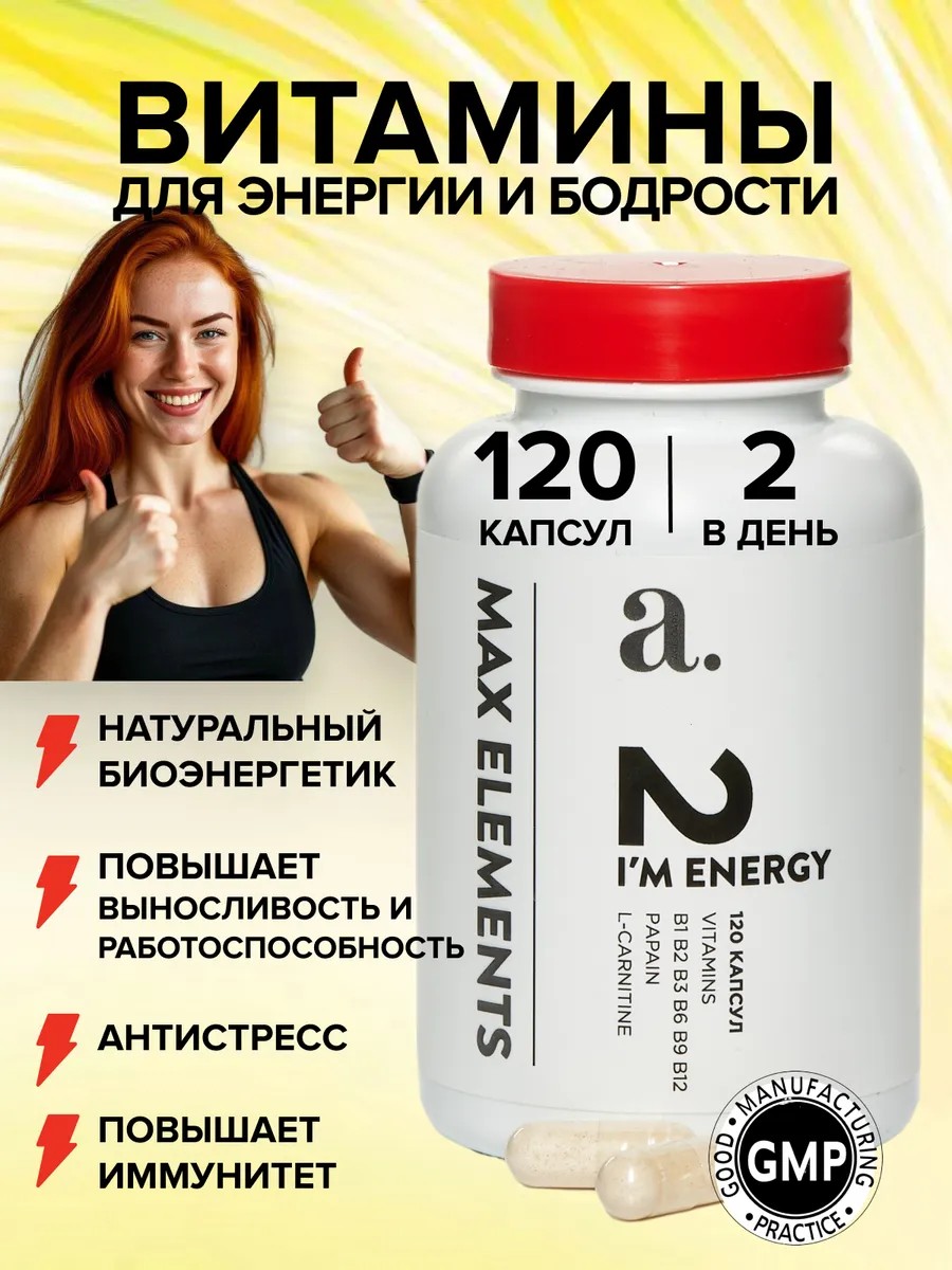 Витамины для энергии и бодрости I'm Energy от Age Care - это комплекс витаминов для мужчин и женщин для повышения тонуса организма, увеличения выносливости и работоспособности во время физических нагрузок.