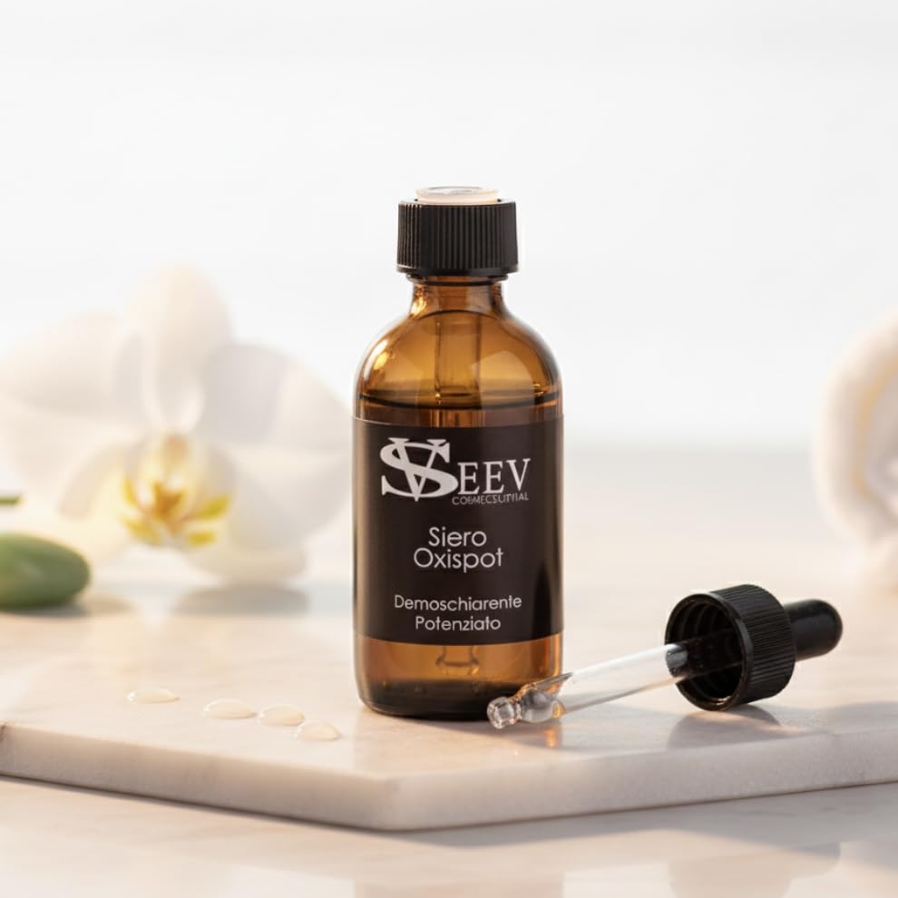 Oxispot serum is the latest innovation from Seev Cosmeceutical in the field of depigmentation. The serum is a whitening treatment for many types of hyperpigmentations on the skin, the effect is characterized by oxidation of the high concentrations of peroxide. The skin immediately appears lighter and the complexion becomes more even. Can be used on any type of hyperpigmentation of the skin, particularly suitable for typical sun spots or post-acne spots. In a high proportion of cases the effect is immediately visible, in the remaining people after several applications. Long-term and daily use of the Oxispot serum produces extraordinary results. It is advisable to use this serum away from sunlight in the winter months, when using it in summer or in sunlight it is necessary to protect yourself with a good cream with SPF. INSTRUCTIONS FOR USE After cleaning, apply a few drops only to the stains every evening, apply several applications to the dark areas. Leave it on for at least 10 minutes so that the serum oxidizes (feeling slight heat or pinching). Before rinsing and follow with your favorite serum, cream or mask. In summer, use sun protection SPF40 Protect-AWith long-term and daily use, it delivers excellent results, confirming its efficacy over time. The innovative formula provides visible results after just a few applications with long-lasting effects. It is suitable for any type of hyperpigmentation and provides an effective solution for various skin problems. Thanks to its oxidative action, it promotes a brighter and more even complexion and improves the overall appearance. Effectively lightens various types of skin blemishes, including sunshine, after acne and hair removal, for even skin.Oxispot-serum voor vlekken, 30 ml Oxispot serum is de nieuwste innovatie van Seev Cosmeceutical op het gebied van depigmentatie. Het serum is een bleekbehandeling voor vele soorten hyperpigmentaties op de huid, het effect wordt gekenmerkt door oxidatie van de hoge concentraties peroxide. De huid krijgt direct een lichtere uitstraling en de teint een gelijkmatigere teint. Kan op elk type hyperpigmentatie van de huid worden gebruikt, bijzonder geschikt voor typische zonnevlekken of postacnefvlekken. In een hoog aandeel van de gevallen is het effect direct zichtbaar, bij de overige personen na meerdere toepassingen. Langdurig en dagelijks gebruik van het Oxispot serum produceert buitengewone resultaten. Het is raadzaam om dit serum in de wintermaanden uit de buurt van zonlicht te gebruiken, bij gebruik in de zomer of bij zonlicht is het noodzakelijk om jezelf met een goede crème met SPF te beschermen. GEBRUIKSAANWIJZING Na het reinigen elke avonden enkele druppels alleen op de vlekken aanbrengen, meerdere toepassingen op de donkere plaatsen aanbrengen. Laat het ten minste 10 minuten lang inwerken, zodat het serum oxideert (lichte hitte of knellen voelen). Voor het spoelen en het favoriete serum, crème of masker volgen. Gebruik in de zomer een zonnebescherming SPF40 Protect-ABij langdurig en dagelijks gebruik levert het uitstekende resultaten, wat de werkzaamheid na verloop van tijd bevestigt. De innovatieve formule zorgt voor zichtbare resultaten al na enkele toepassingen met langdurige effecten. Het is geschikt voor elk type hyperpigmentatie en biedt een effectieve oplossing voor verschillende huidproblemen. Dankzij zijn oxidatieve werking bevordert het een helderdere en gelijkmatigere teint en verbetert het totaalbeeld. Verlicht effectief verschillende soorten huidvlekken, waaronder zonneschijn, na acne en ontharing, voor een gelijkmatige huid.