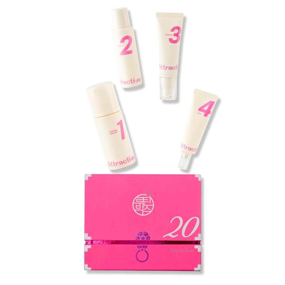 Age Routine Box Attractive 20s | Moisture | Korean K-Beauty Glass Skin Plump Glow | Panthenol Centella Asiatica Extract and Hyaluronic Acid | Cleanser-Toner-Essenece-Cream 4step homecare routine box