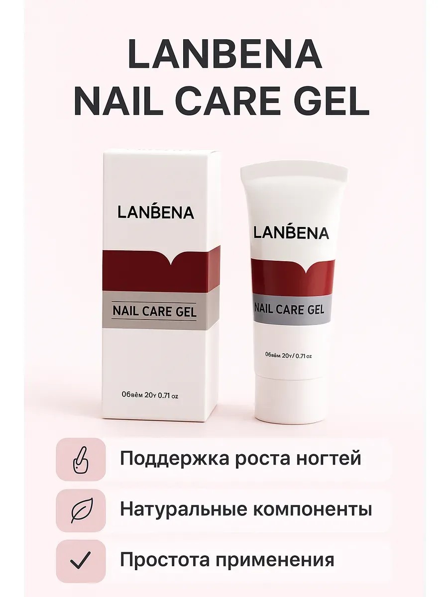 lanbena nail care gel, гель от расслоения и пожелтения ногтей, натуральный гель для укрепления ногтей, гель с травами для ногтей, средство от ломкости и грибка ногтей