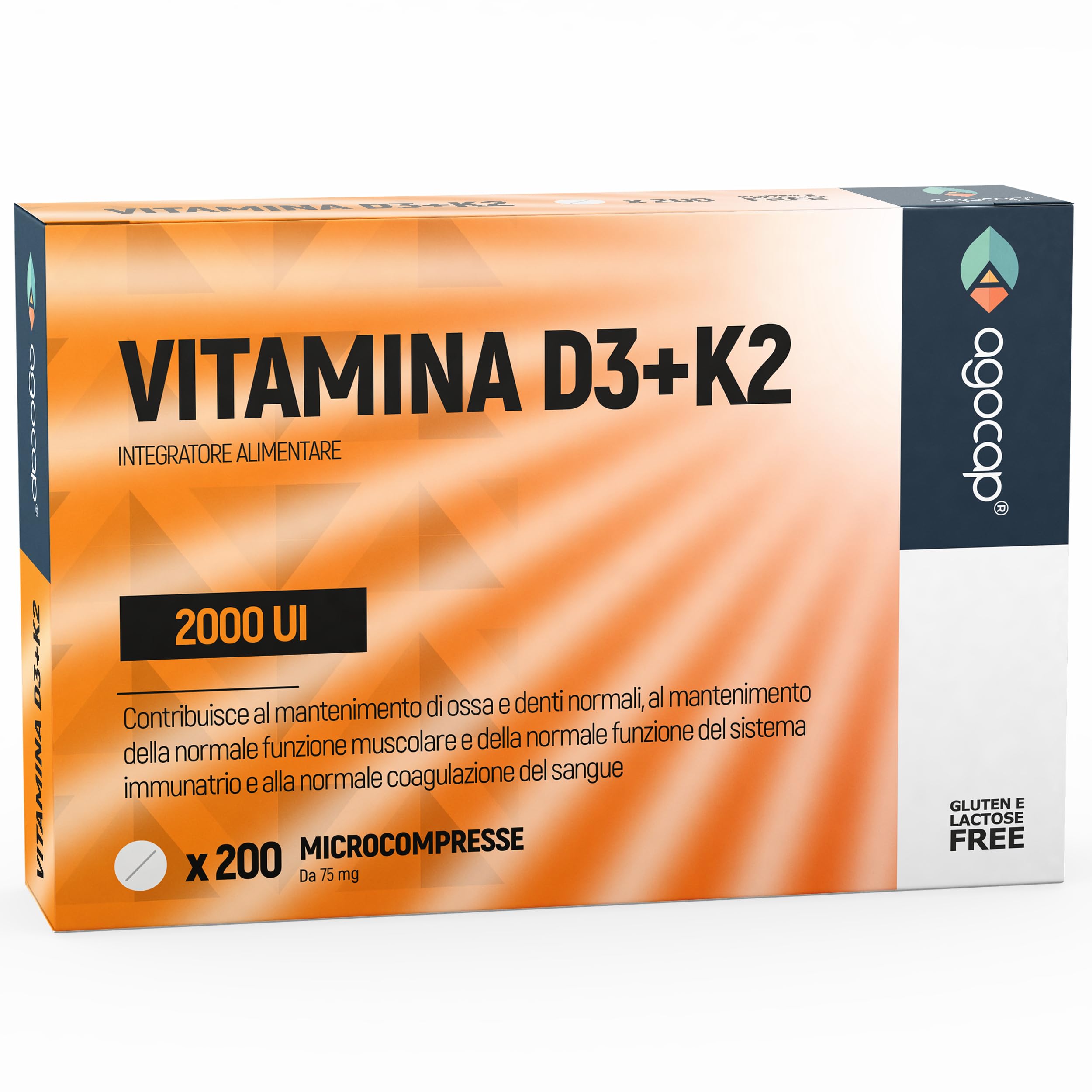 Agocap Vitamin D3 + Vitamin K2 (MK7) Dietary supplement for bones and the immune system 200 tablets