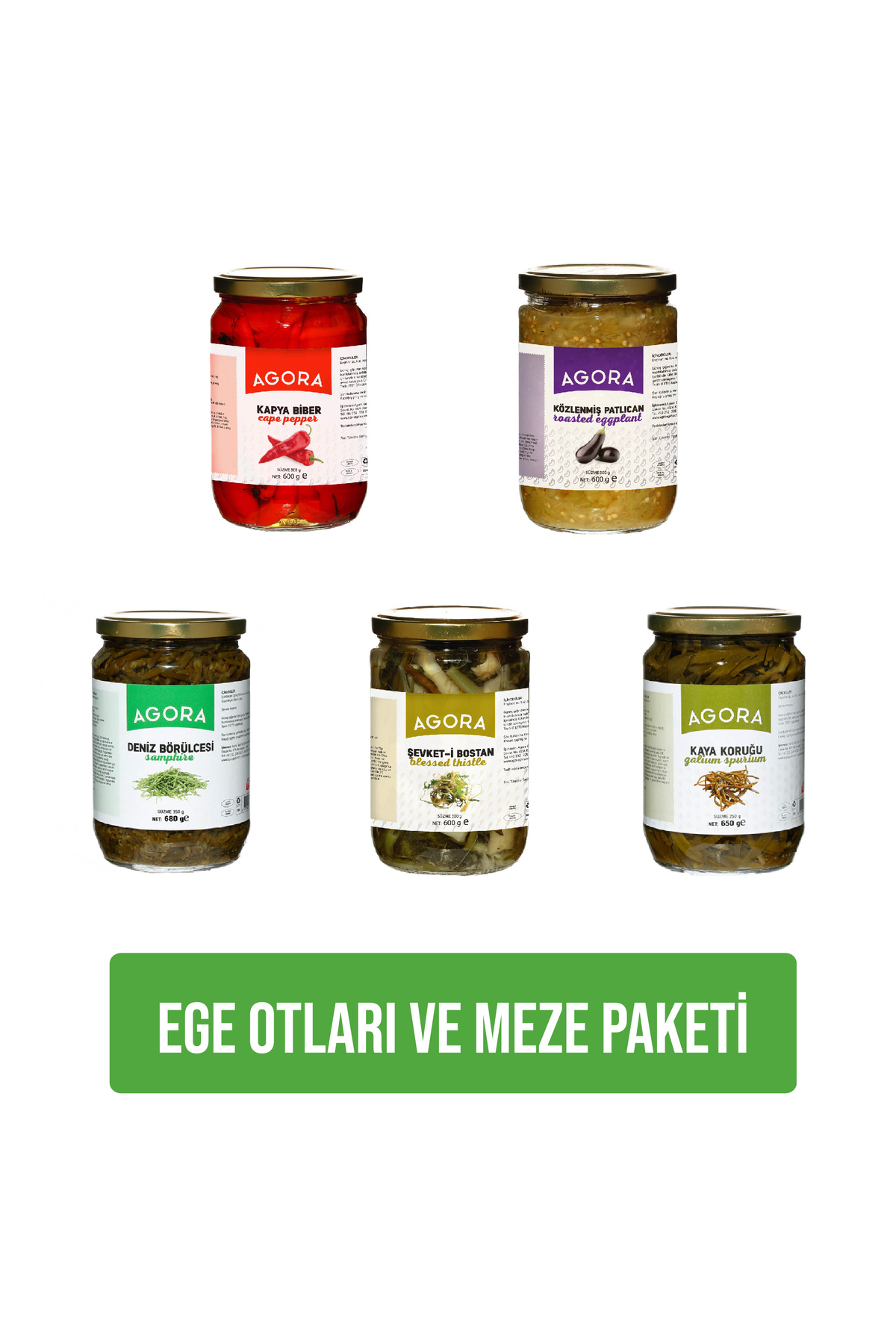 Agora Aegean Herbs Appetizer Package (Sea Beans Shevketi Bostan Rockwort Roasted Eggplant Roasted Pepper