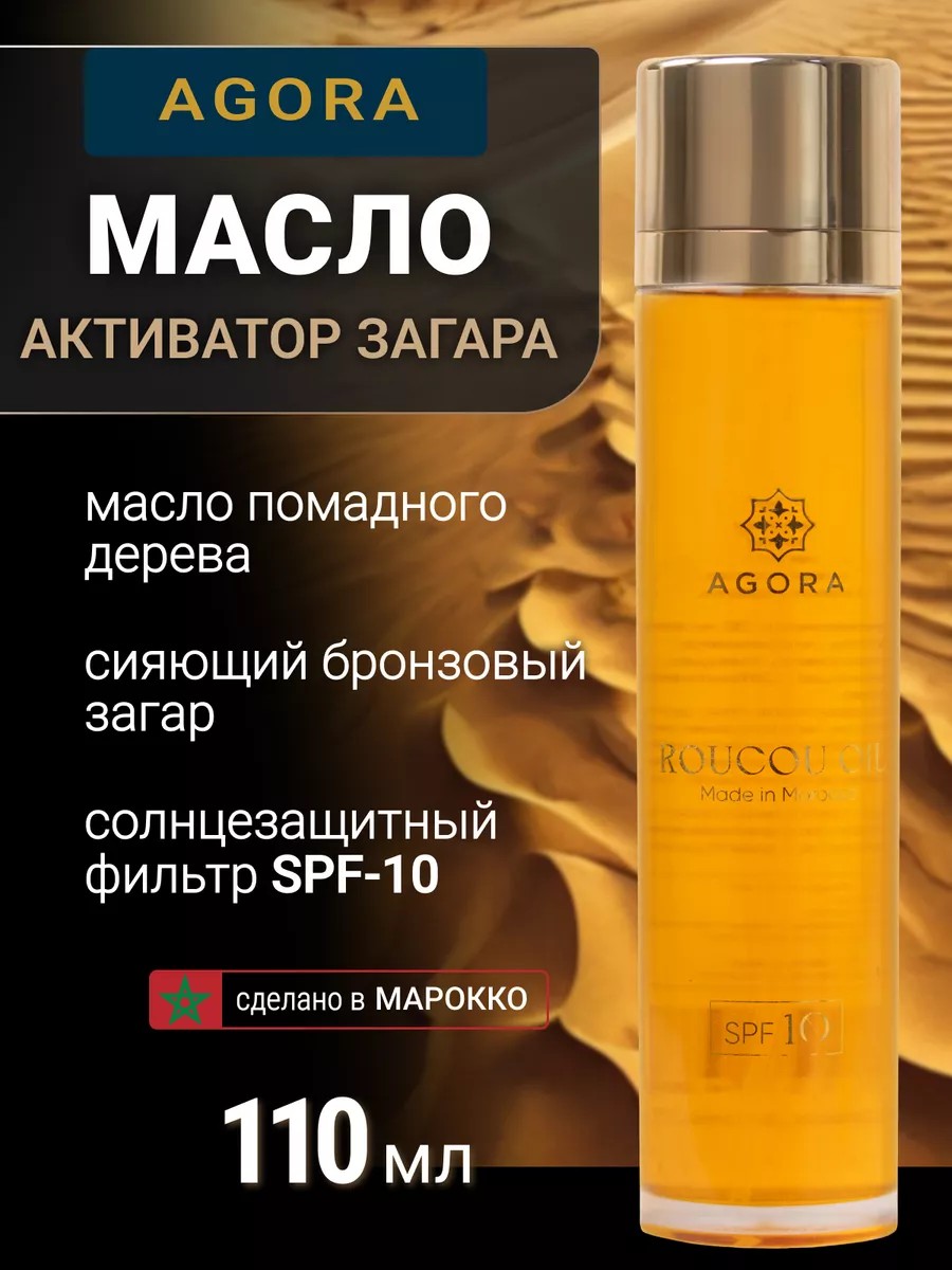 Масло для загара AGORA - уникальная смесь роскошных марроканских масел для лица и тела. Оно может использоваться для массажа. Является эфирным маслом, которое может быть эффективным средством для красоты женщин, подростков и всех, кто заботится о своей коже. Имеет множество преимуществ, включая защиту от солнца, профилактика пигментации кожи, активацию синтеза меланина и мгновенное приобретение красивого загара.