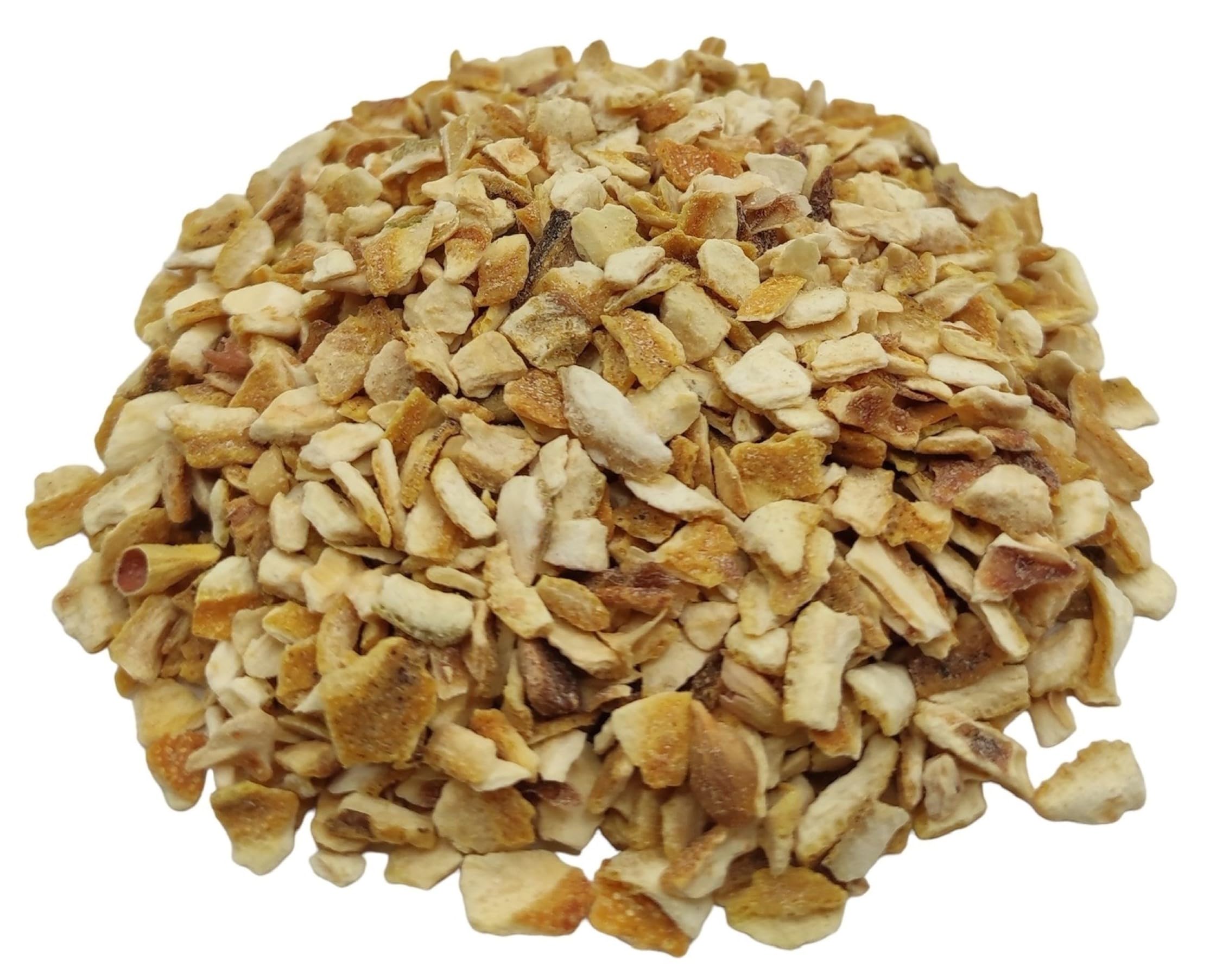 The lemon (Citrus limon) is a species of small evergreen trees in the flowering plant family Rutaceae. The origin of the lemon is unknown, although lemons are thought to have first grown in northeastern India, northern Myanmar or China. As a cultivated tree, the lemon is now grown to a limited extent in most tropical and subtropical countries. Lemon trees usually bloom year-round and the fruit is picked 6 to 10 times a year. The elliptical yellow fruit of the tree is used around the world for culinary and non-culinary purposes, mainly for its sap, which has both culinary and cleansing uses. The peel can be used in the manufacture of pectin, a polysaccharide used as a gelling agent and stabilizer in food and other products.Gedroogde Citroen Schil 85g - 1.95Kg Citrus Limonum Pericarpium (460 gram) De citroen (Citrus limon) is een soort van kleine groenblijvende bomen in de bloeiende plantenfamilie Rutaceae. De oorsprong van de citroen is onbekend, hoewel men denkt dat citroenen voor het eerst zijn gegroeid in het noordoosten van India, het noorden van Myanmar of China. Als cultuurboom wordt de citroen nu in beperkte mate gekweekt in de meeste tropische en subtropische landen. Citroenbomen bloeien meestal het hele jaar door en de vrucht wordt 6 tot 10 keer per jaar geplukt. De ellipsvormige gele vrucht van de boom wordt over de hele wereld gebruikt voor culinaire en niet-culinaire doeleinden, voornamelijk voor het sap, dat zowel culinair als reinigend wordt gebruikt. De schil kan worden gebruikt bij de vervaardiging van pectine, een polysaccharide dat wordt gebruikt als geleermiddel en stabilisator in voedsel en andere producten.
