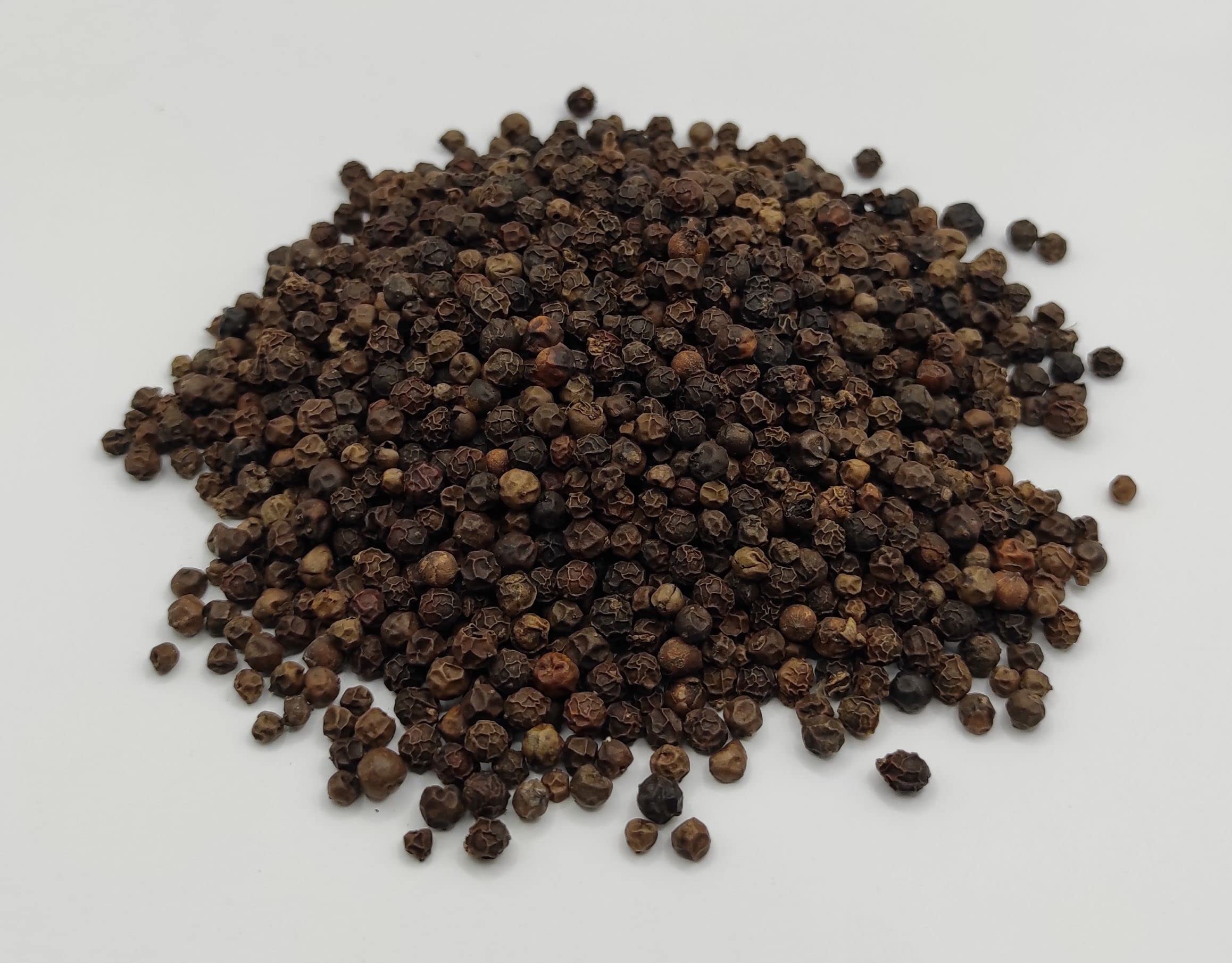Black pepper is a climbing plant that can grow up to 5 meters high. It has large bunches of small round fruits. Black pepper is the unripe green fruit of the Piper nigrum plant. This unripe fruit is collected and dried in the sun and turns black. It is the most commercial spice in the world and is known in all cuisines. It is used in almost all foods, salads, sauces, meat, fish, vegetables, pasta. It is also used in perfumery. What tradition says: Pepper has been cultivated in India since the 13th century. The Arabs brought pepper overland to Alexandria in Egypt and slowly acquired their monopoly. At that time, pepper replaced the domestic currency in some areas. Since it was very expensive in Byzantium, only the emperors and their garden enjoyed it. The great explorers must have made discoveries in the pepper, because they tried to find alternative routes to India to squeeze out the Arabs and discovered new places to achieve this goal. Control of India was eventually conquered by the English, but in the meantime (16th century) pepper cultivation began in Sumatra, Malaysia, Cambodia and Madagascar. So when imports to Europe became enormous in the 17th-18th centuries, pepper prices began to fall and were no longer the privilege of the rich.Hele Zwarte Peperkorrels Zwarte Peper 85g - 1.95Kg (220 gram) Zwarte peper is een klimplant die tot 5 meter hoog kan worden. Het heeft grote trossen kleine ronde vruchten. Zwarte peper is de onrijpe groene vrucht van de Piper nigrum plant. Deze onrijpe vrucht wordt verzameld en gedroogd in de zon en wordt zwart. Het is de meest commerciële specerij ter wereld en is bekend in alle keukens. Het wordt gebruikt in bijna alle voedingsmiddelen, salades, sauzen, vlees, vis, groenten, pasta. Het wordt ook gebruikt in de parfumerie. Wat traditie zegt: Peper werd sinds de 13e eeuw in India verbouwd. De Arabieren brachten peper over land over naar Alexandrië in Egypte en verwierven zo langzaam hun monopolie. In die tijd verving peper in sommige gebieden de binnenlandse valuta. Omdat het in Byzantium erg duur was, genoten alleen de keizers en hun tuin ervan. De grote ontdekkingsreizigers moeten ontdekkingen doen in de peper, omdat ze probeerden alternatieve routes naar India te vinden om de Arabieren eruit te persen en nieuwe plaatsen ontdekten om dit doel te bereiken. De controle over India werd uiteindelijk veroverd door de Engelsen, maar in de tussentijd (16e eeuw) begon men peper te verbouwen in Sumatra, Maleisië, Cambodja en Madagaskar. Dus toen de invoer naar Europa in de 17e-18e eeuw enorm werd, begonnen de peperprijzen te dalen en waren ze niet langer het voorrecht van de rijken.