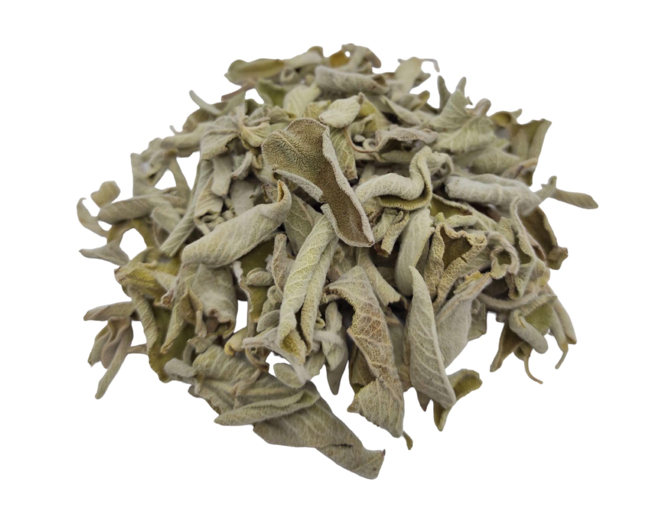 Wild Greek Sage leaves the mountains of the island of Evia. Sage is an herb with a camphor-like aroma. As an herb, sage is considered to have a slightly peppery taste. In Western cuisine it is used to season fatty meats (especially as a marinade), cheeses and some drinks. In Great Britain and Flanders, sage is used with onion for stuffing poultry or pork and also in sauces.Wilde Griekse Salie Kruidenthee Hele Bladeren 85g - 1.95Kg Salvia Triloba (220 gram) Wilde Griekse Salie vertrekt uit de bergen van het eiland Evia. Salie is een kruid met een kamferachtig aroma.Als kruid wordt salie beschouwd als een licht peperige smaak. In de westerse keuken wordt het gebruikt voor het op smaak brengen van vet vlees (vooral als marinade), kazen en sommige drankjes. In Groot-Brittannië en Vlaanderen wordt salie gebruikt met ui voor het vullen van gevogelte of varkensvlees en ook in sauzen.