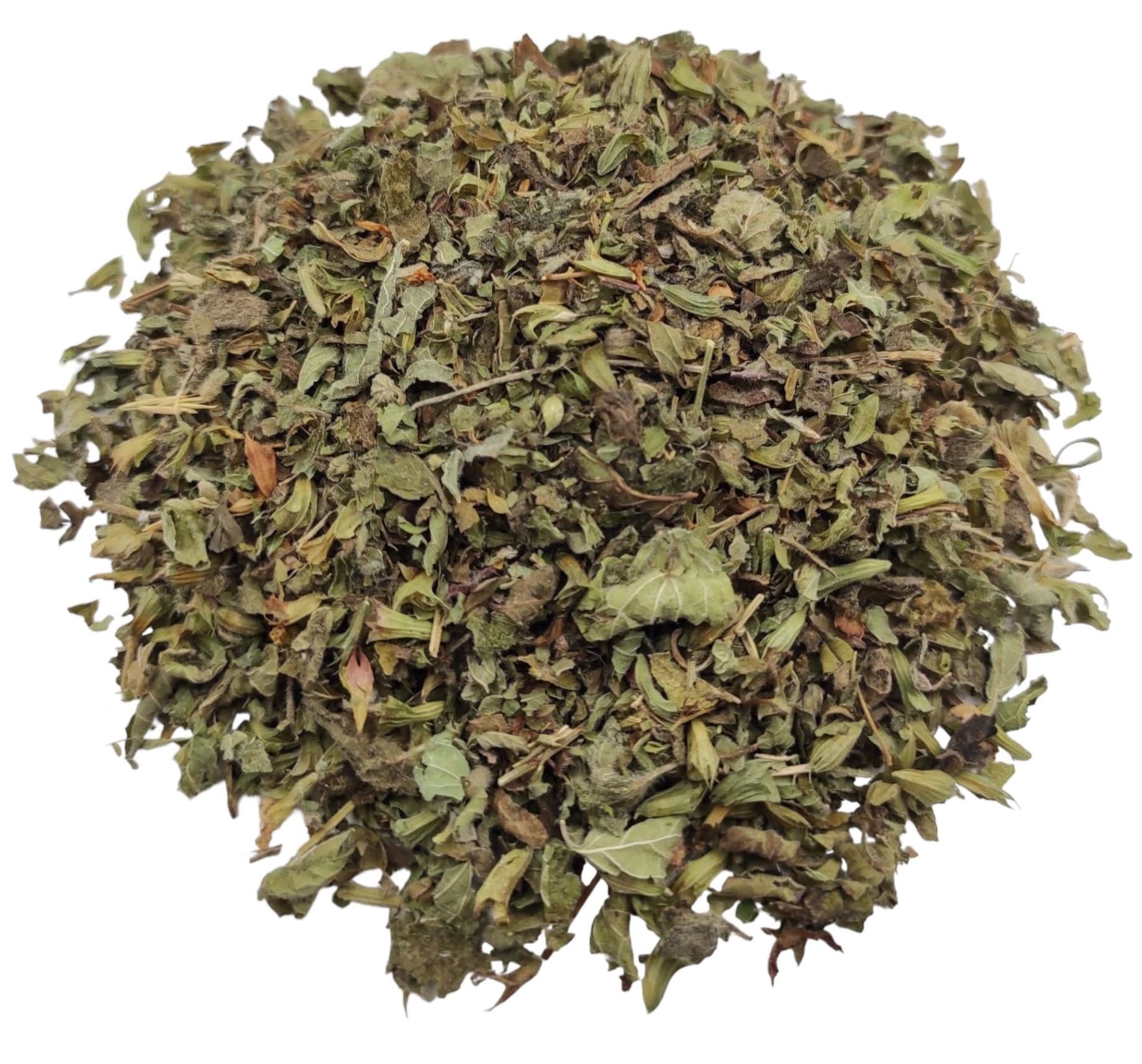 Melissa officinalis, known as lemon balm, balsam, balsam or balsam mint, is a perennial herbaceous plant in the mint family Lamiaceae, native to south-central Europe, North Africa, the Mediterranean and Central Asia. Melissa is a genus of perennial herbs in the Lamiaceae, native to Europe and Asia, but cultivated and naturalized in many other places. The name Melissa is derived from the Greek word mélissa meaning honey, due to the abundance of nectar in the flowers. The stems are square, like most other plants in the mint family. The leaves are borne in opposite pairs on the stems and are usually oval or heart-shaped and emit a lemony scent when crushed. Axillary spikes of white or yellowish flowers appear in summer. The most commonly cultivated species of this genus is Melissa officinalis, commonly known as lemon balm in the United States, and as balsam in England. Lemon balm is used for digestive problems. Lemon balm extract and oil are used as a flavoring agent in foods and beverages.Wilde Citroenmelisse Gedroogde Gesneden Bladeren 85g - 5KG Premium Kwaliteit (85 gram) Melissa officinalis, bekend als citroenmelisse, balsem, balsem of balsemmunt, is een meerjarige kruidachtige plant in de muntfamilie Lamiaceae, afkomstig uit Zuid-centraal Europa, Noord-Afrika, het Middellandse Zeegebied en Centraal-Azië. Melissa is een geslacht van overblijvende kruiden in de Lamiaceae, afkomstig uit Europa en Azië, maar op veel andere plaatsen gekweekt en genaturaliseerd. De naam Melissa is afgeleid van het Griekse woord mélissa dat honing betekent, vanwege de overvloed aan nectar in de bloemen. De stelen zijn vierkant, net als de meeste andere planten in de muntfamilie. De bladeren worden in tegenovergestelde paren op de stengels gedragen en zijn meestal ovaal of hartvormig en geven een citroenachtige geur af wanneer ze worden gekneusd. Axillaire pieken van witte of gelige bloemen verschijnen in de zomer. De meest gekweekte soort van dit geslacht is Melissa officinalis, in de Verenigde Staten algemeen bekend als citroenmelisse, en als balsem in Engeland. Citroenmelisse wordt gebruikt bij spijsverteringsproblemen. In voedingsmiddelen en dranken worden het extract en de olie van citroenmelisse als smaakstof gebruikt.