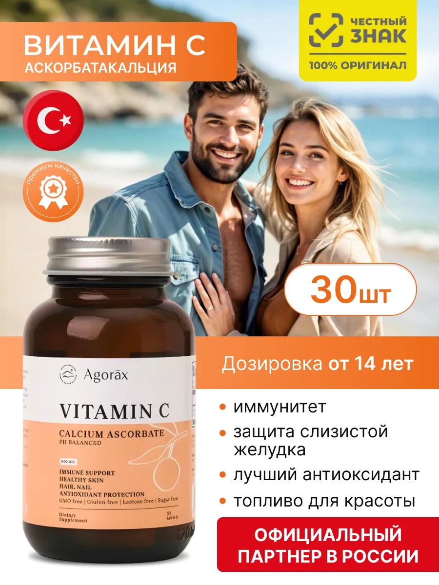 Биологически активная добавка к пище «Агоракс Витамин С / Agorax Vitamin C» AGORAX содержит 900 мг аскорбата кальция в каждой капсуле, что обеспечивает оптимальную дозировку витамина С для поддержания здоровья и красоты. Благодаря нейтральному pH, добавка безопасна для желудка, а цитрусовые биофлавоноиды, включающие рутин и кверцетин, усиливают действие витамина С и обладают противовоспалительным эффектом. Регулярный прием «Агоракс Витамин С» способствует укреплению иммунитета, улучшению состояния кожи, повышению ее упругости и эластичности, а также укреплению стенок капилляров, снижая ломкость. Полифенольные соединения в составе добавки оказывают мощное антиоксидантное действие, защищая клетки от повреждения свободными радикалами. «Агоракс Витамин С» - это надежный помощник для поддержания здоровья и красоты, способствующий активному образу жизни.