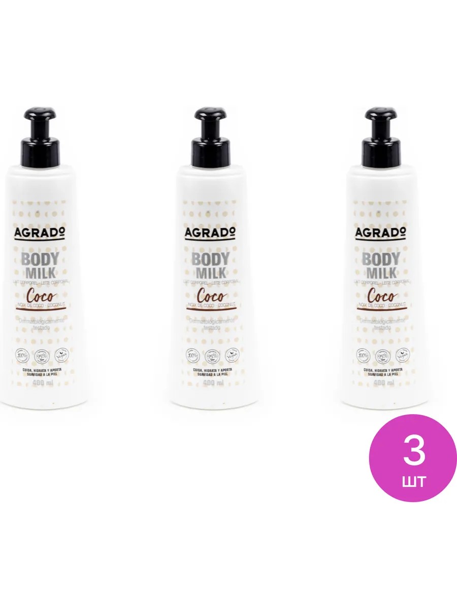 Agrado COCO Молочко для тела увлажняющее с кокосом, 400мл, 3 шт