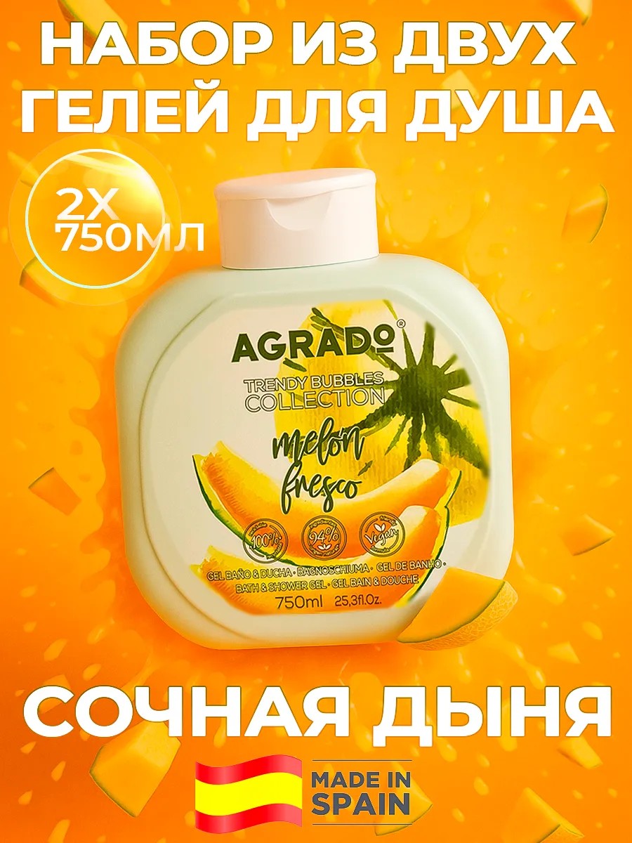 2 геля в наборе. Общий объем 1500 мл. Agrado Сочная Дыня.