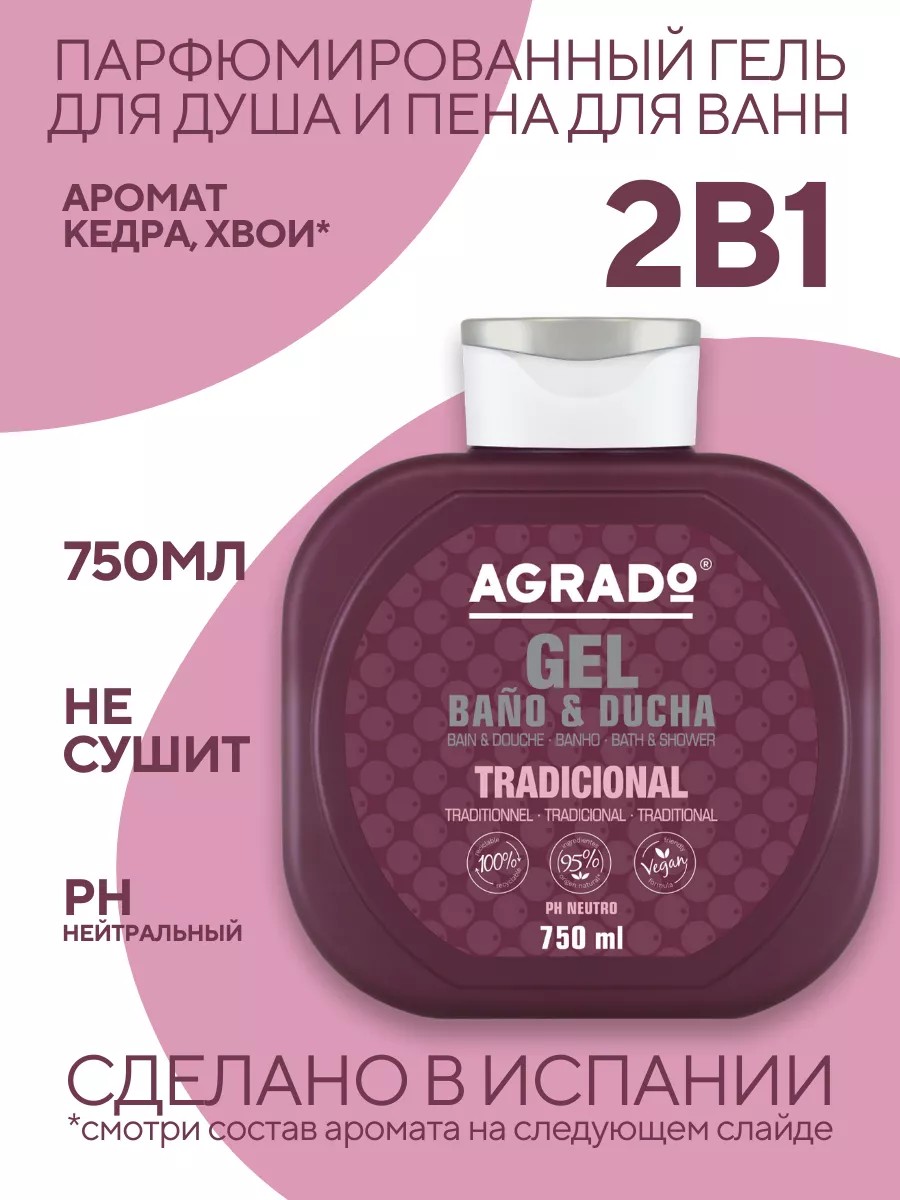 Agrado Гель для душа парфюмированный Tradicional 2в1 750мл