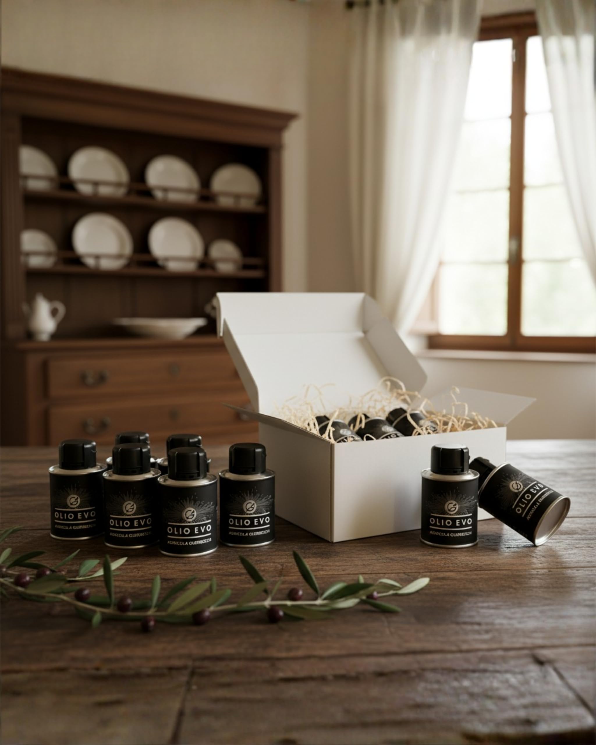 Agricola Guerreschi Forfait Gourmet - Huile d'olive extra vierge 100 italienne - Extrait à froid - EVO100 - TOUTES LES RACINES 624 (EVO100) - 12 canettes de 100 ml