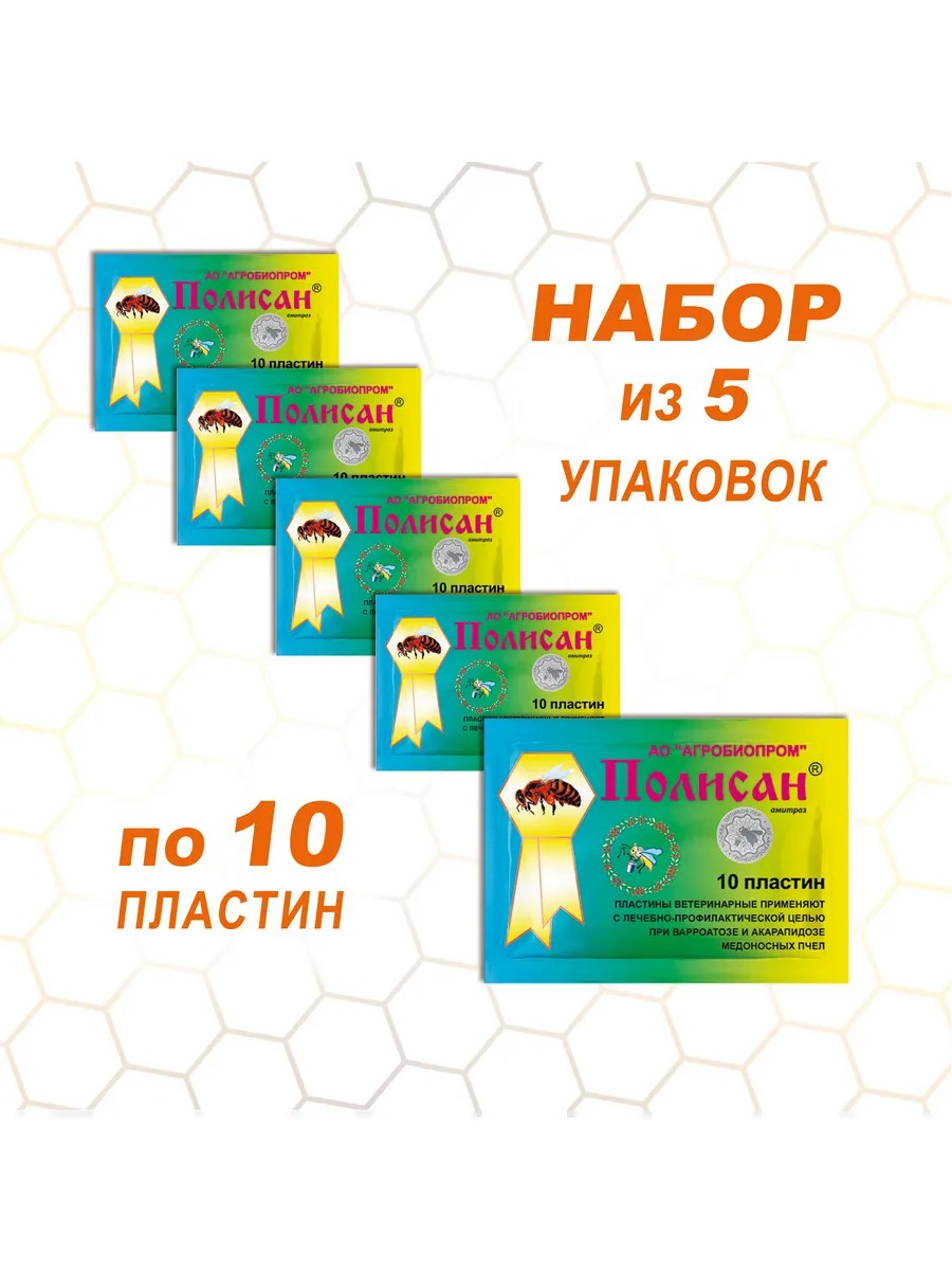 АГРОБИОПРОМ Полисан Пластины от акарапидоза и варроатоза пчел, 5 уп
